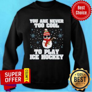 Snowman Christmas You’re Never Too Cool To Play Ice Hockey Shirt