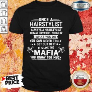 Once A Hairstylist Always A Hairstylist No Matter Where You Go Or What You Do You Can Never Truly Het Out Of It Its Like The Mafia You Know Too Much Shirt