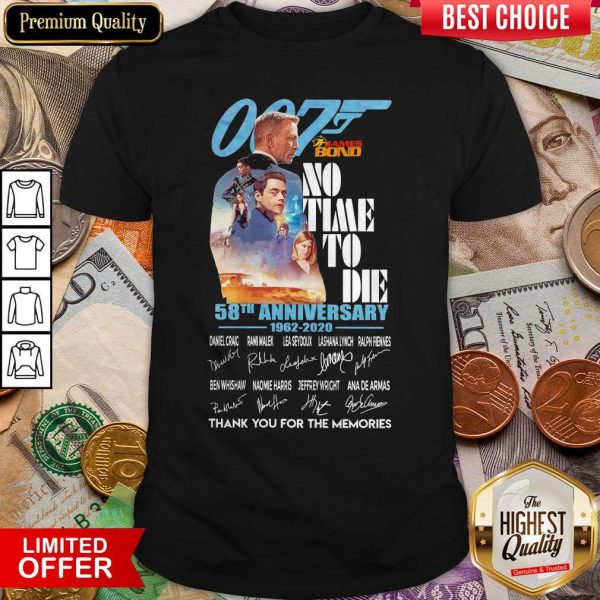 007 James Bond No Time To Die 58th Anniversary 1962 2020 Thank You For The Memories Signatures Shirt
