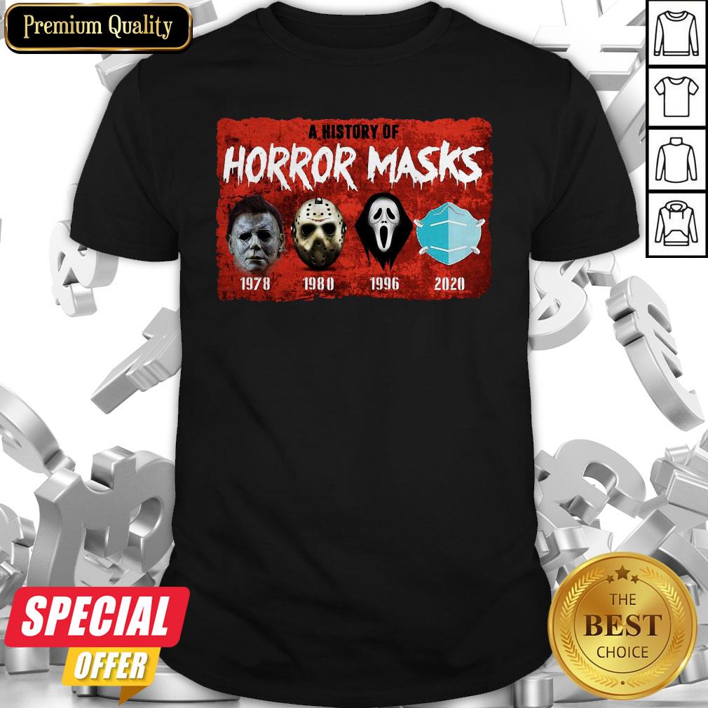 A History Of Horror Masks 1976 1980 1996 2020 Shirt