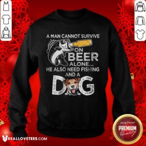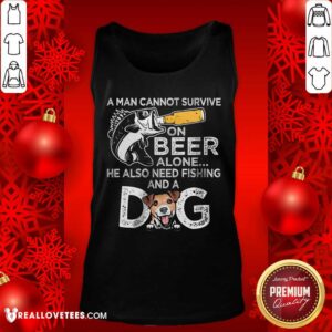 A Man Cannot Survive On Beer Alone He Also Needs Fishing And A Dog Shirt