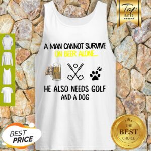 A Man Cannot Survive On Beer Alone He Also Needs Golf And A Dog Paw Shirt