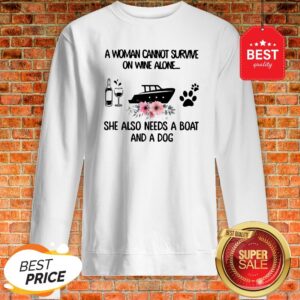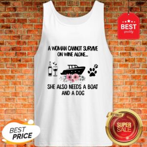 A Woman Cannot Survive On Wine Alone She Also Needs A Boat Dog Paw Flower Shirt