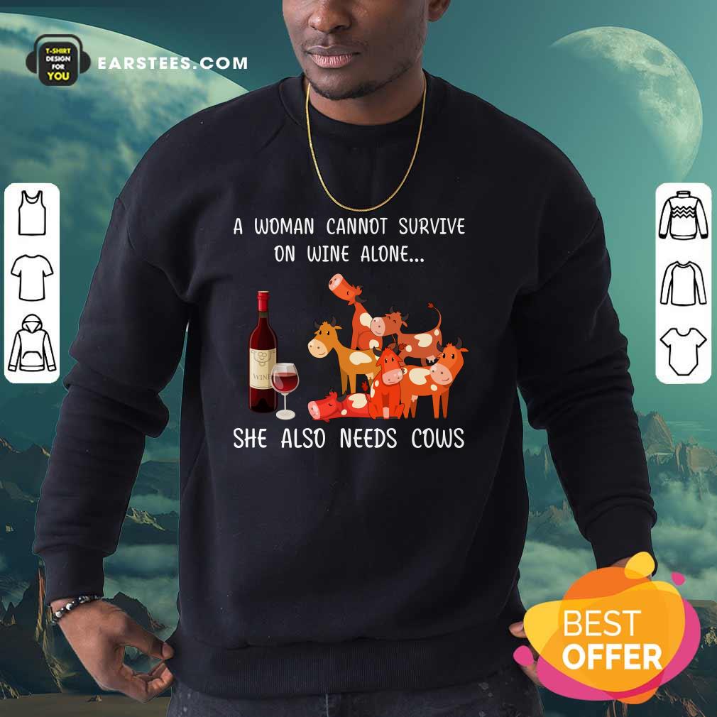 A Woman Cannot Survive On Wine Alone She Also Needs Cows Shirt