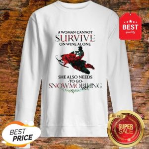 A Woman Cannot Survive On Wine Alone She Also Needs Snowmobiling Shirt