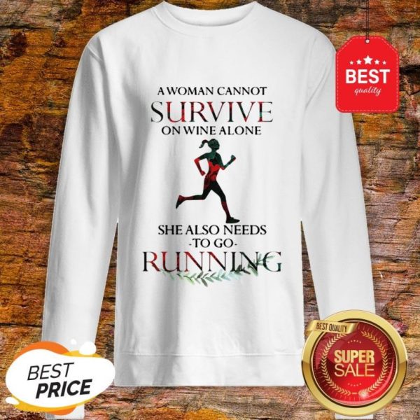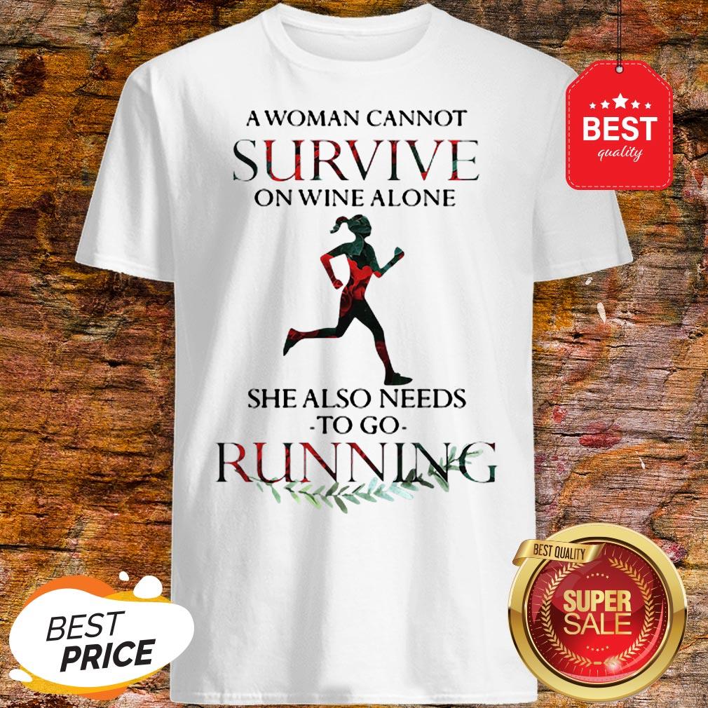 A Woman Cannot Survive On Wine Alone She Also Needs To Go Running Shirt