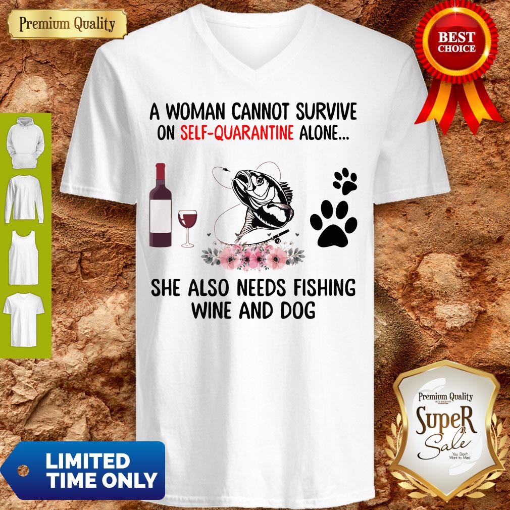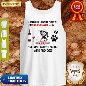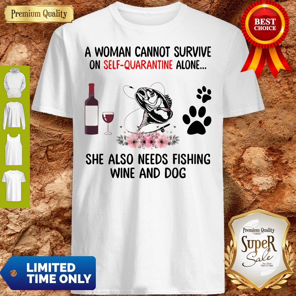 A Women Cannot Survive On Self Quarantine Alone She Also Needs Fishing Wine And Dog Shirt