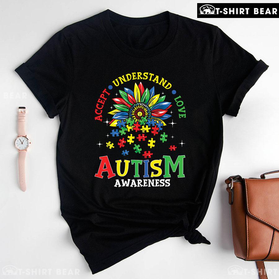 Accept Understand Love Flower Puzzle Pieces Autism Awareness T-Shirt