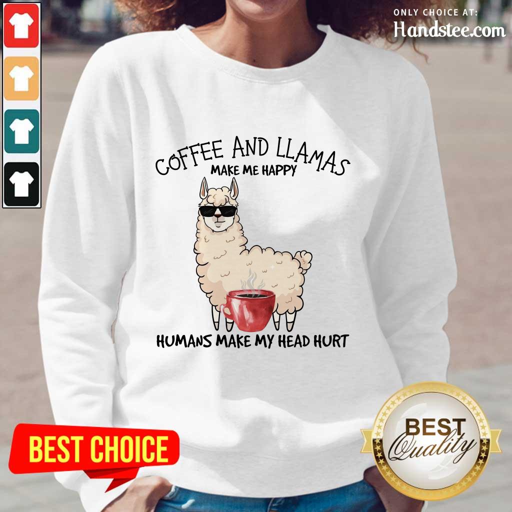 Amused Coffee And Llamas Make Me Happy Humans Make My Head Hurt Shirt