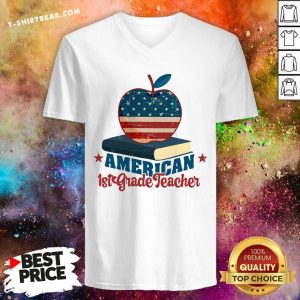 Apple Book American 1st Grade Teacher American Flag Shirt