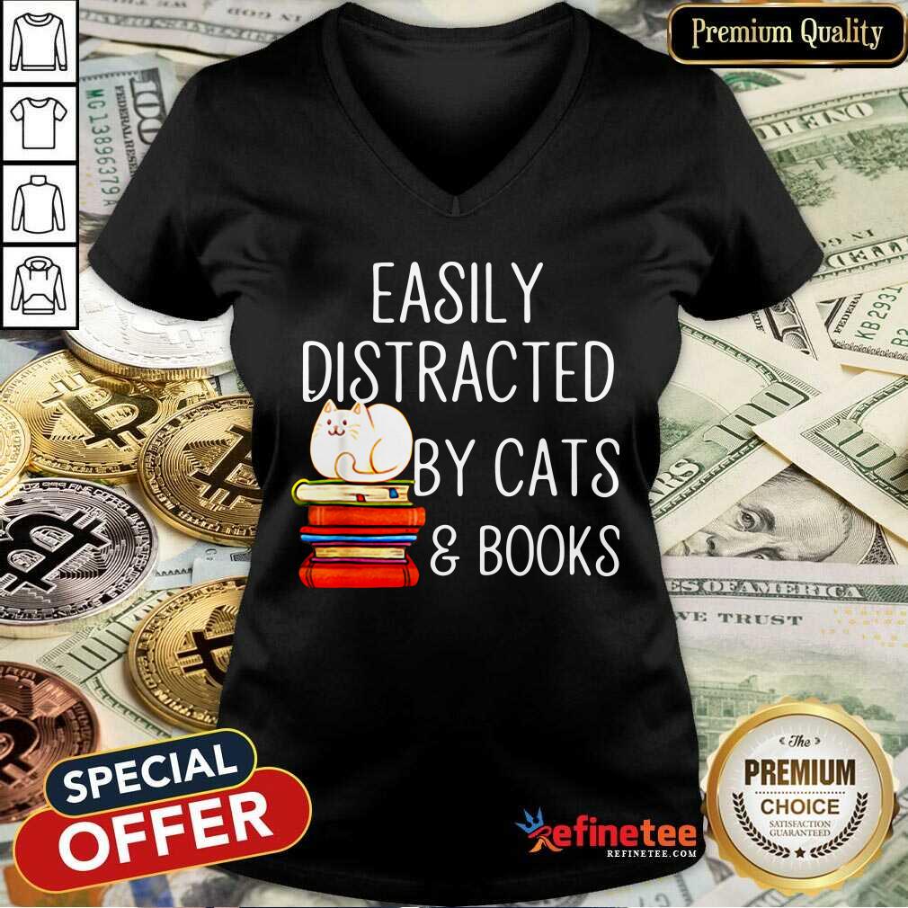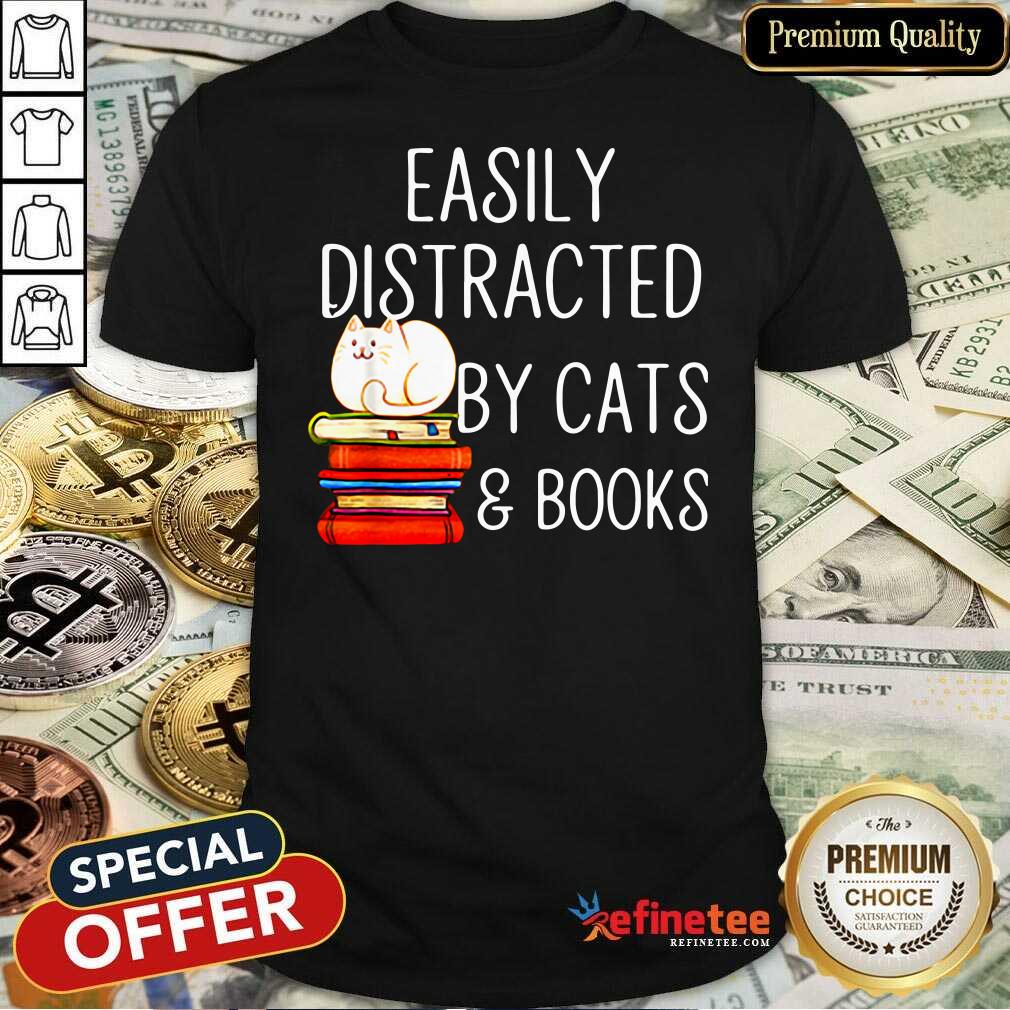 Attractive Easily Distracted By Cats And Books Shirt