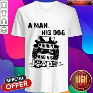 Awesome A Man His Dog And His Jeep Shirt
