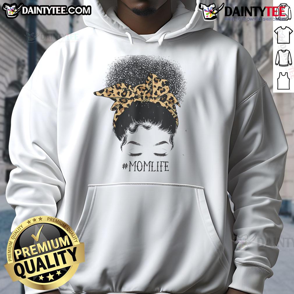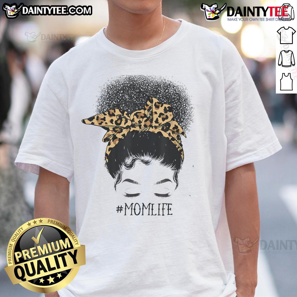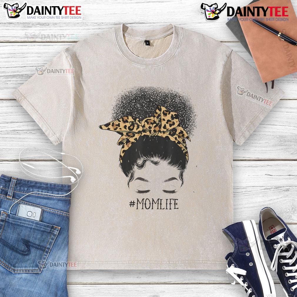 Awesome Afro Mom Life Messy Bun Leopard Black Mom Mothers Day T-Shirt