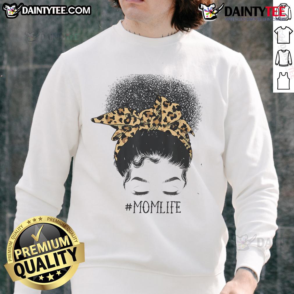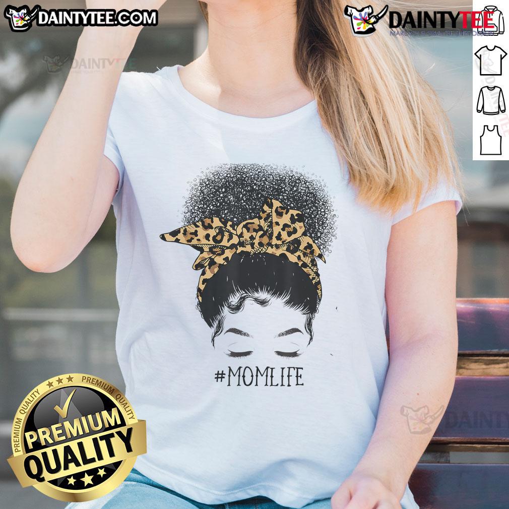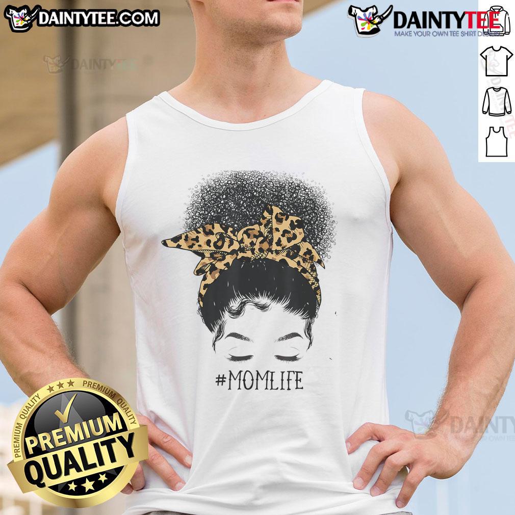 Awesome Afro Mom Life Messy Bun Leopard Black Mom Mothers Day T-Shirt