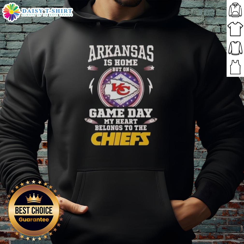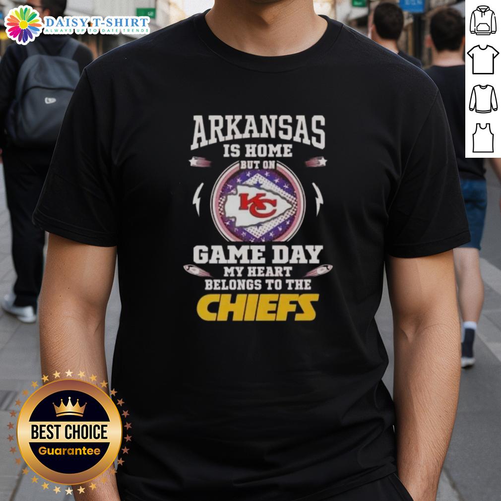 Awesome Arkansas Is Home But On Game Day My Heart Belongs To The Kansas City Chiefs T-Shirt