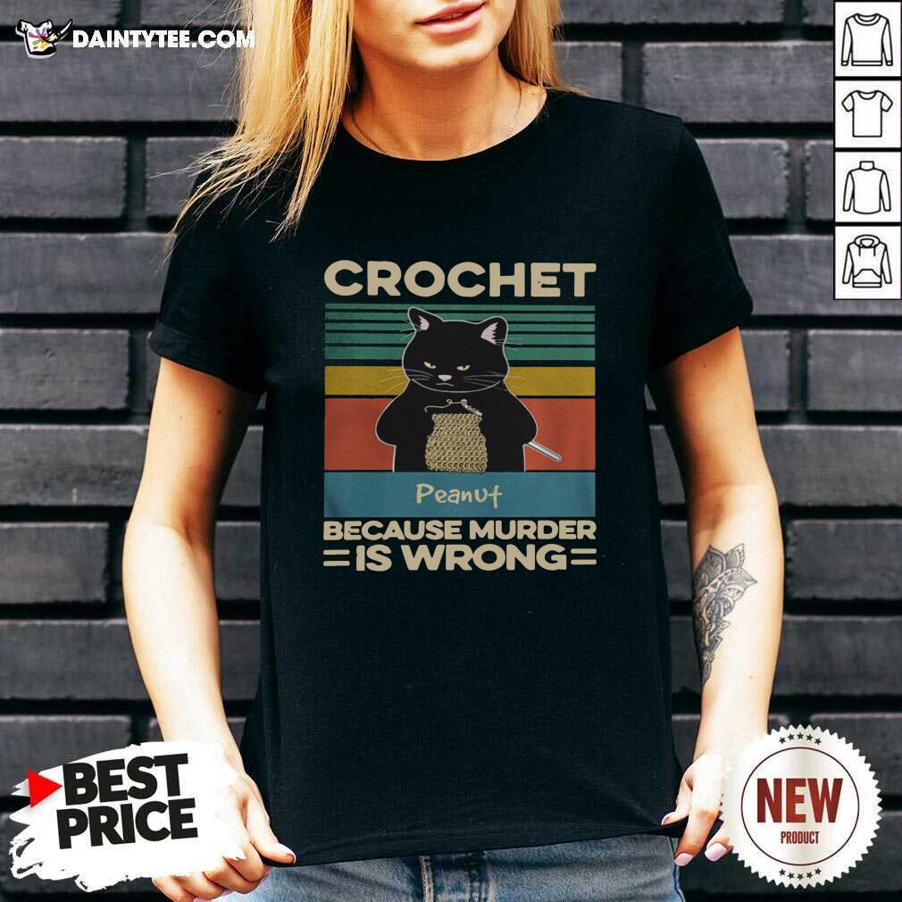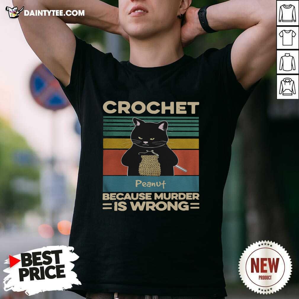 Awesome Black Cat Crochet Peanut Because Murder Is Wrong Vintage Shirt