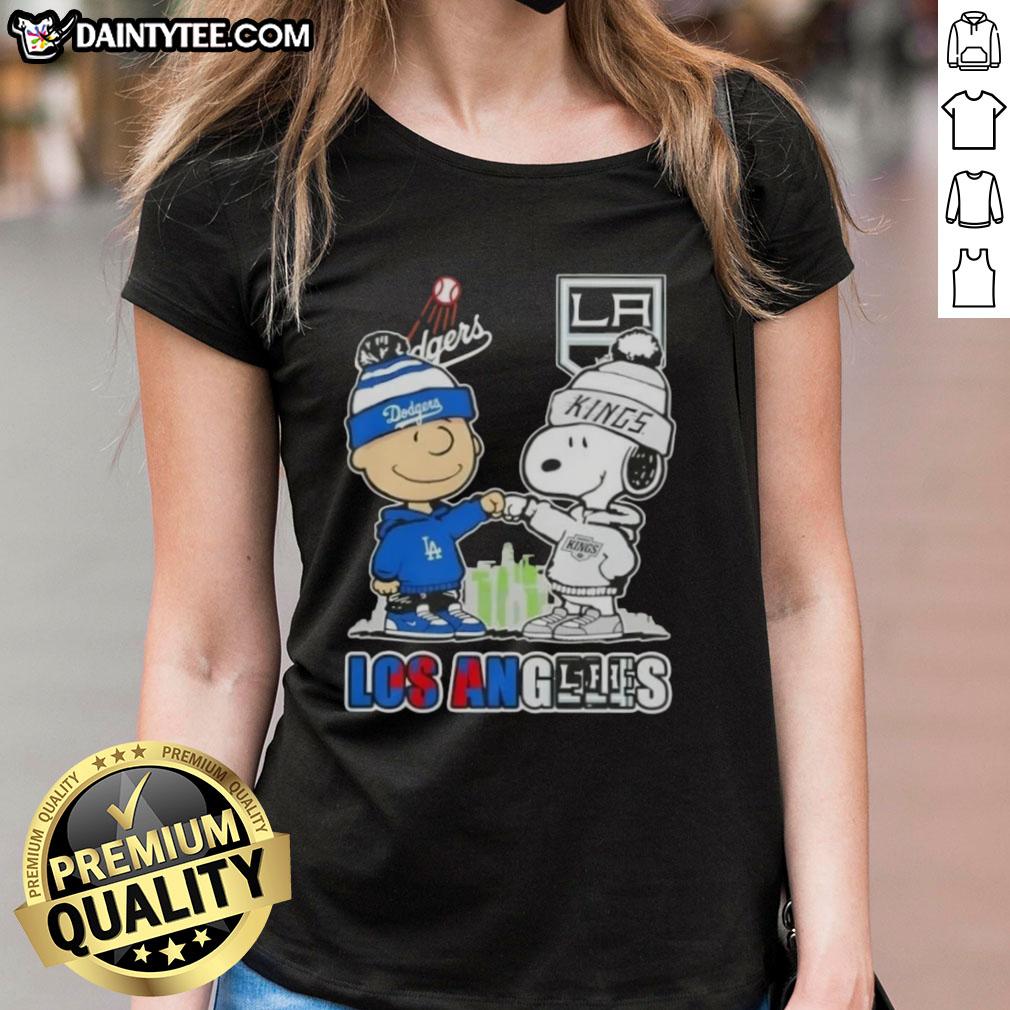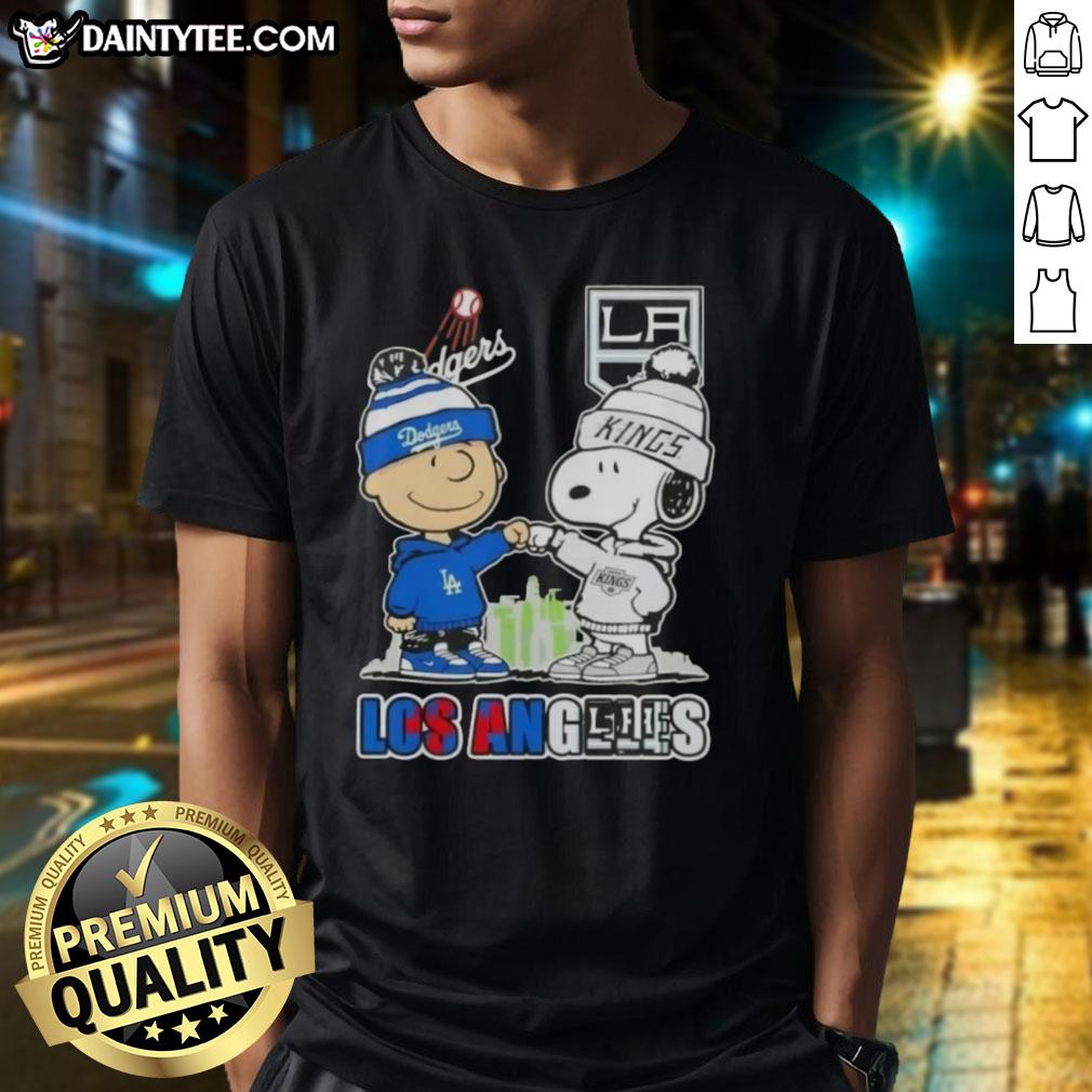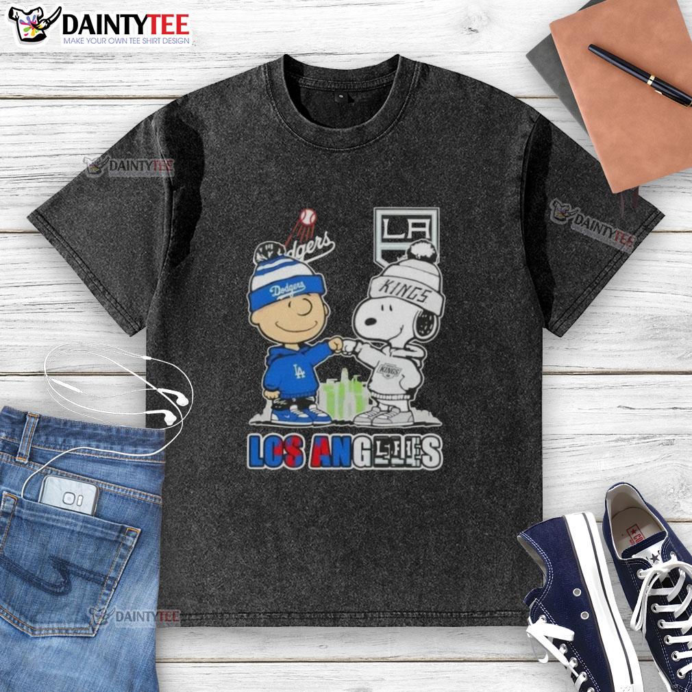 Awesome Charlie Brown Fist Bump Snoopy Los Angeles City Sports Dodgers X Kings Skyline T-Shirt