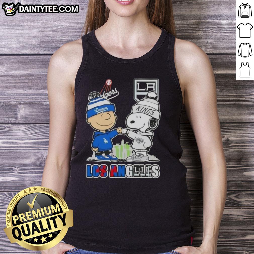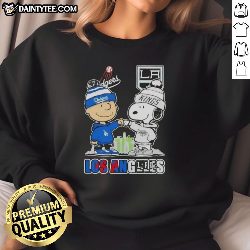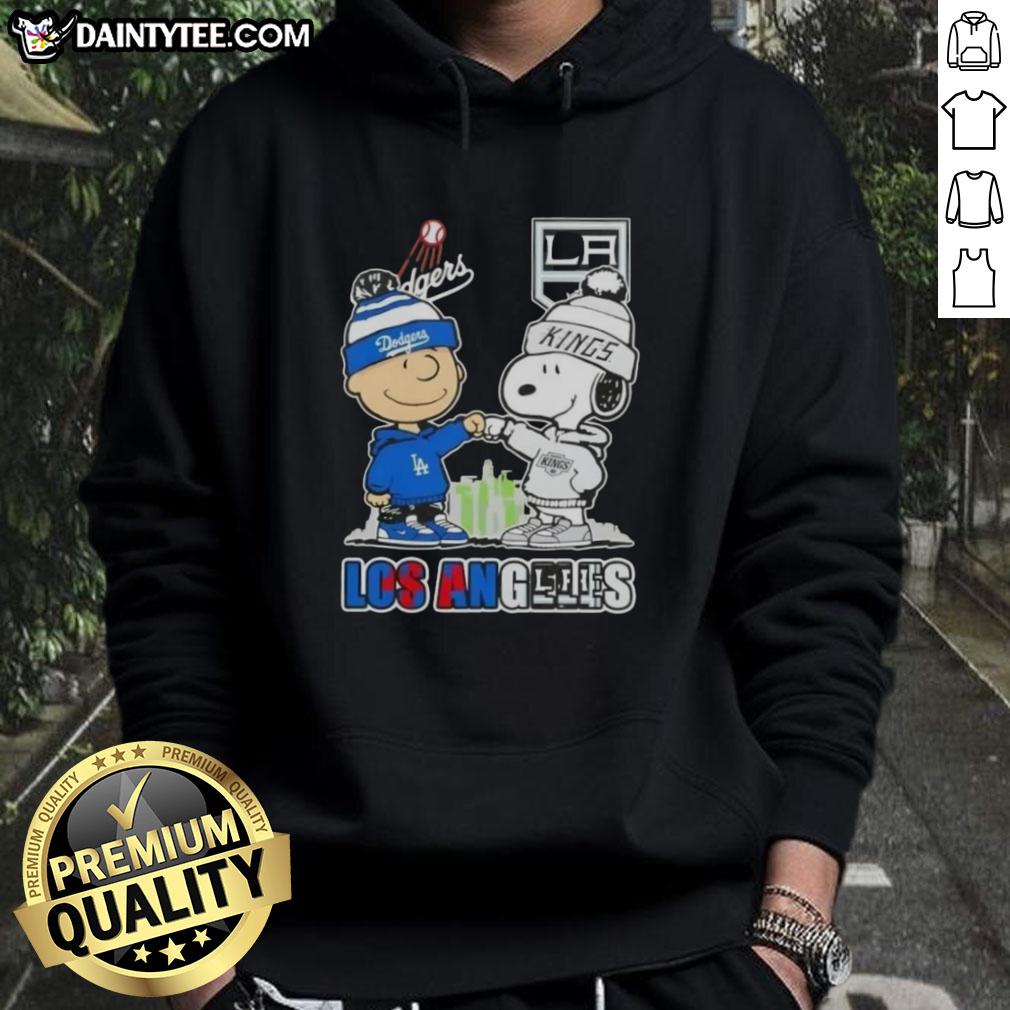 Awesome Charlie Brown Fist Bump Snoopy Los Angeles City Sports Dodgers X Kings Skyline T-Shirt