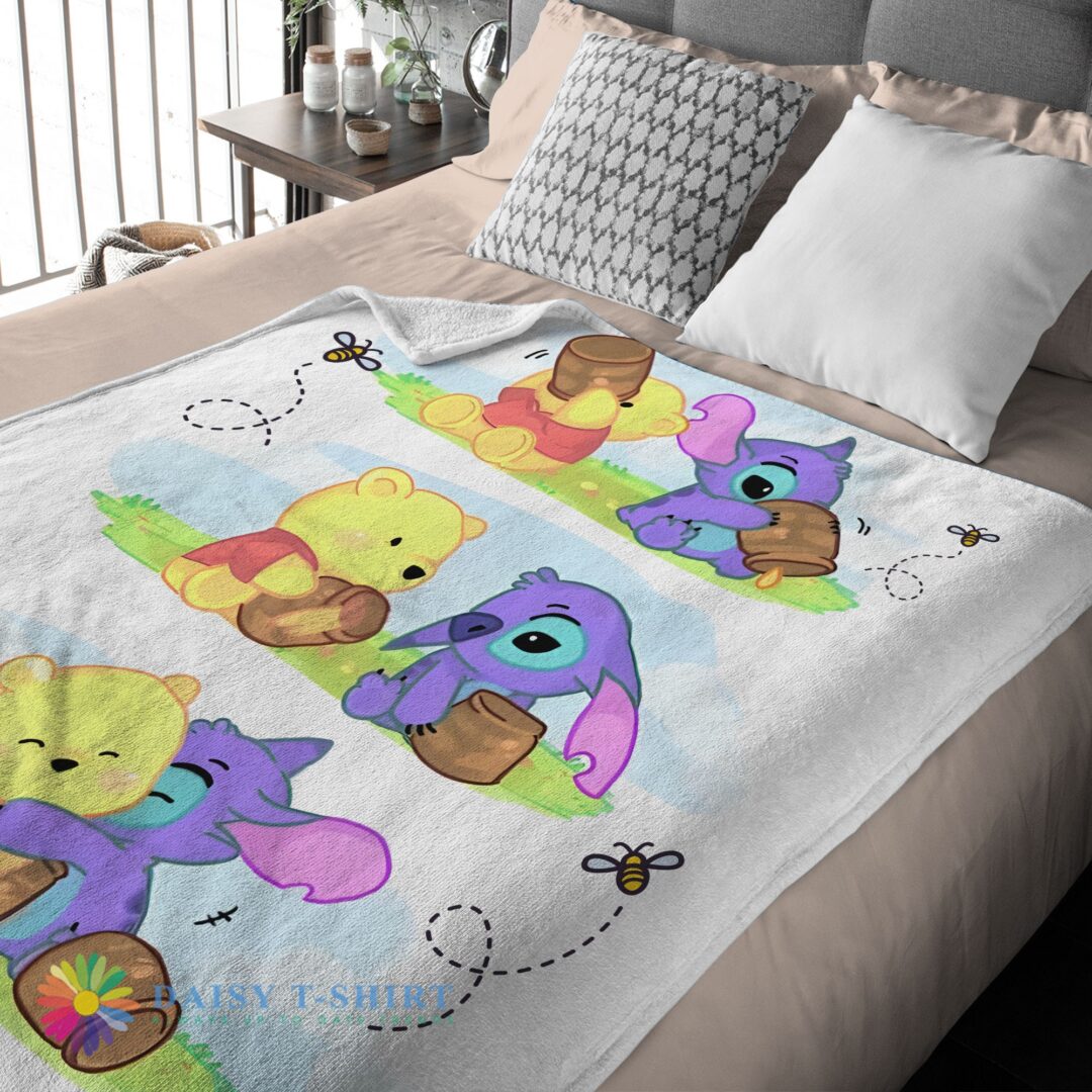 Awesome Cute Disney Winnie The Pooh And Stitch Fleece Blanket Customize Blanket