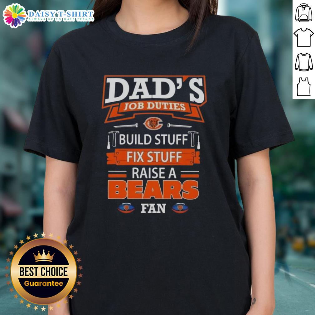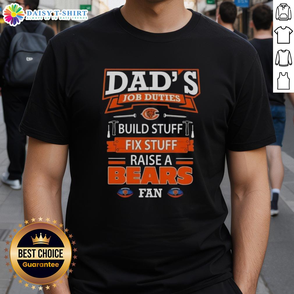 Awesome Dad’s Job Duties Build Stuff Fix Stuff Raise A Chicago Bears Football Fan T-Shirt
