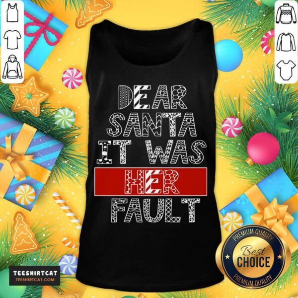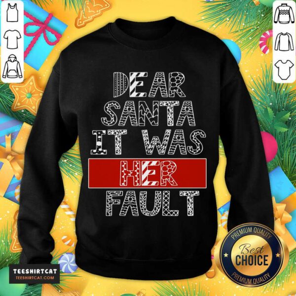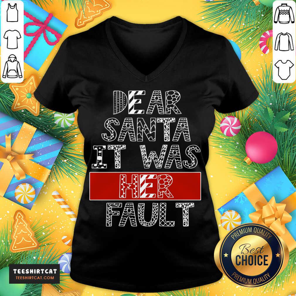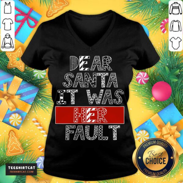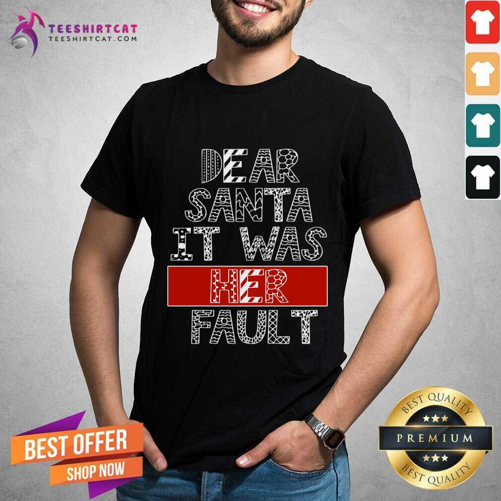 Awesome Dear Santa It Was Her Fault Funny Couples Christmas Gift T-Shirt