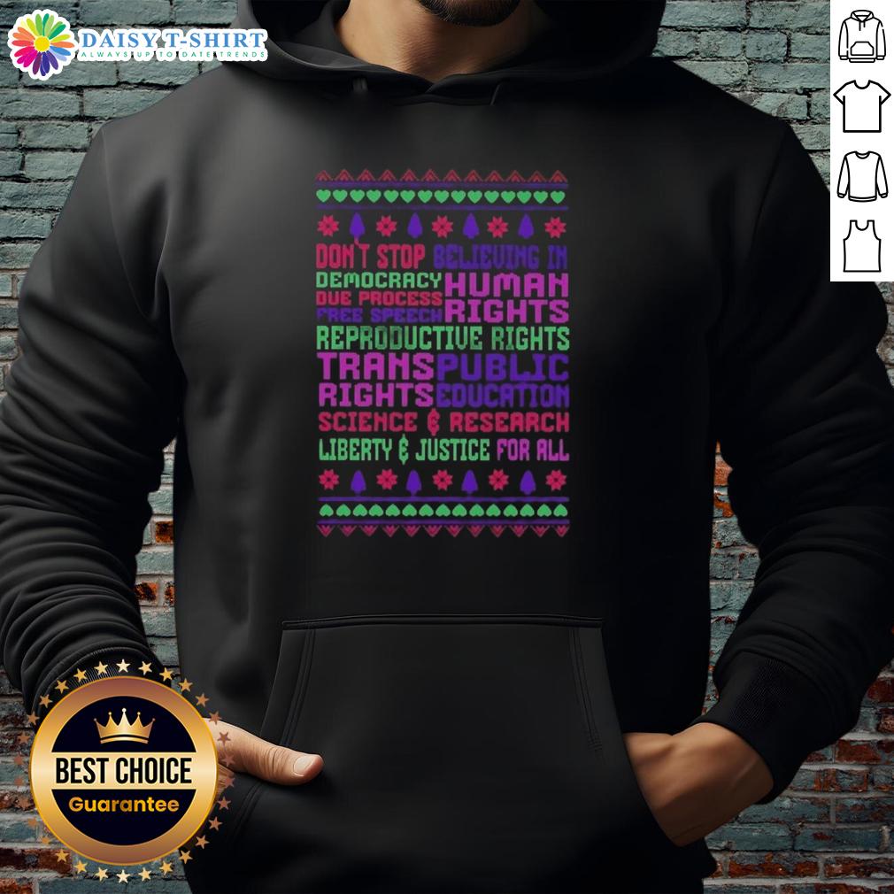 Awesome Don’t Stop Believing In Democracy Due Process Free Speech Human Rights Christmas T-Shirt
