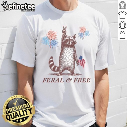 Awesome Feral & Free Patriotic Racoon 4th July T-Shirt