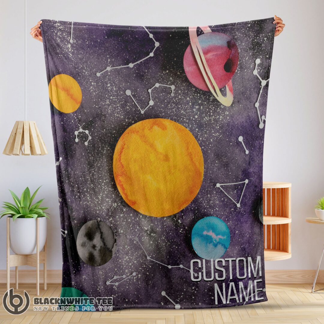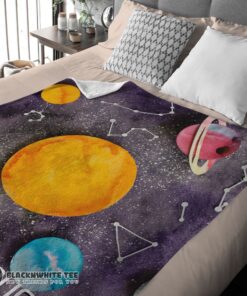Awesome Good Outer Space Galaxy Watercolor Planets & Stars Blanket Fleece Customized Blanket