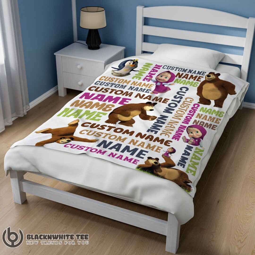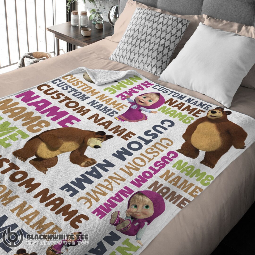 Awesome Good Personalized Masha And The Bear Blanket Fleece Customized Blanket