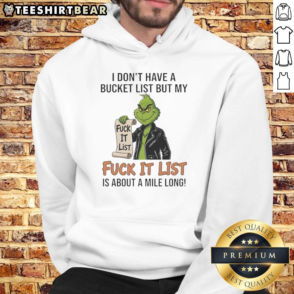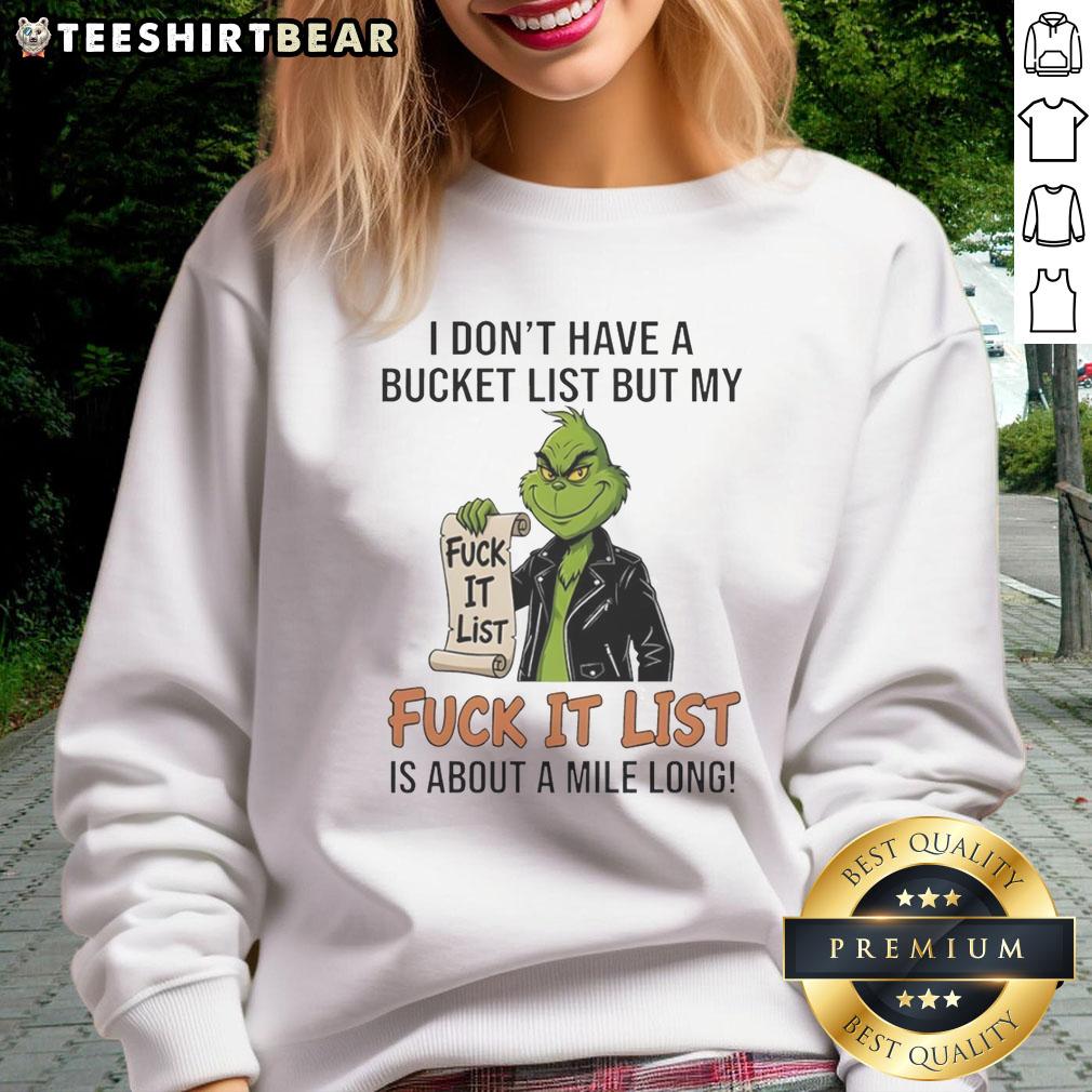 Awesome Grinch I Don’t Have A Bucket List But My Fuck It List Fuck It List Is About A Mile Long T-Shirt