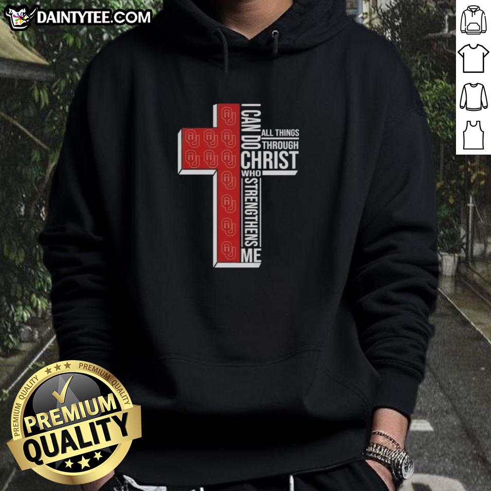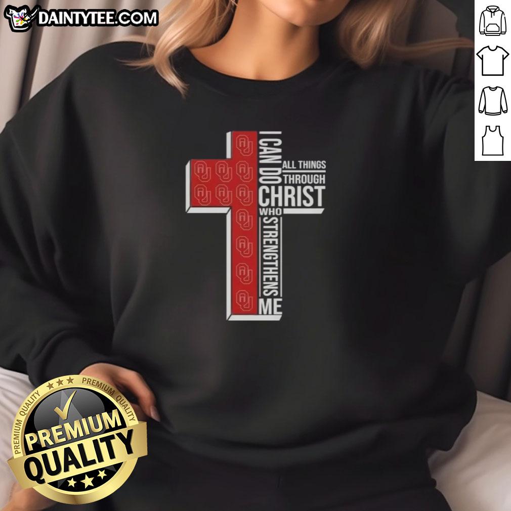 Awesome I Can Do All Things Through Christ Who Strengthens Me Oklahoma Sooners Football Cross T-Shirt