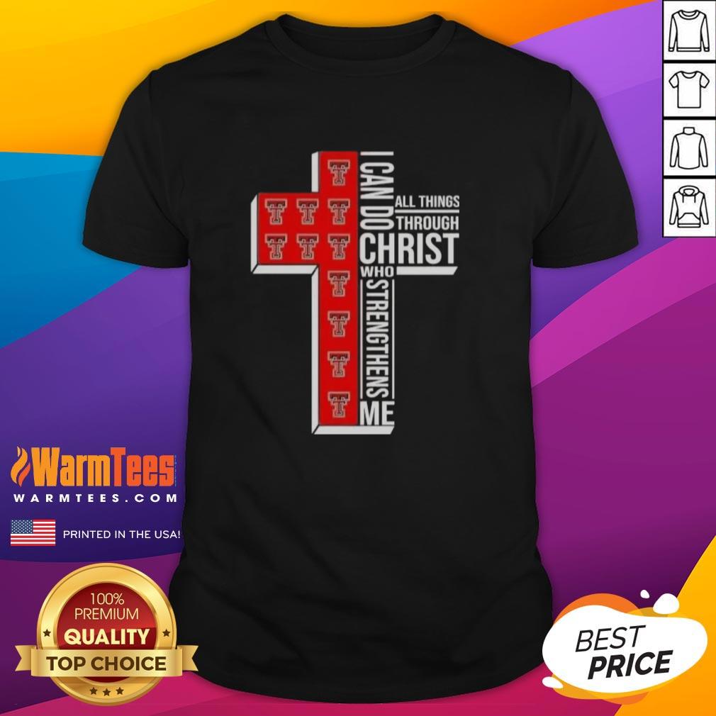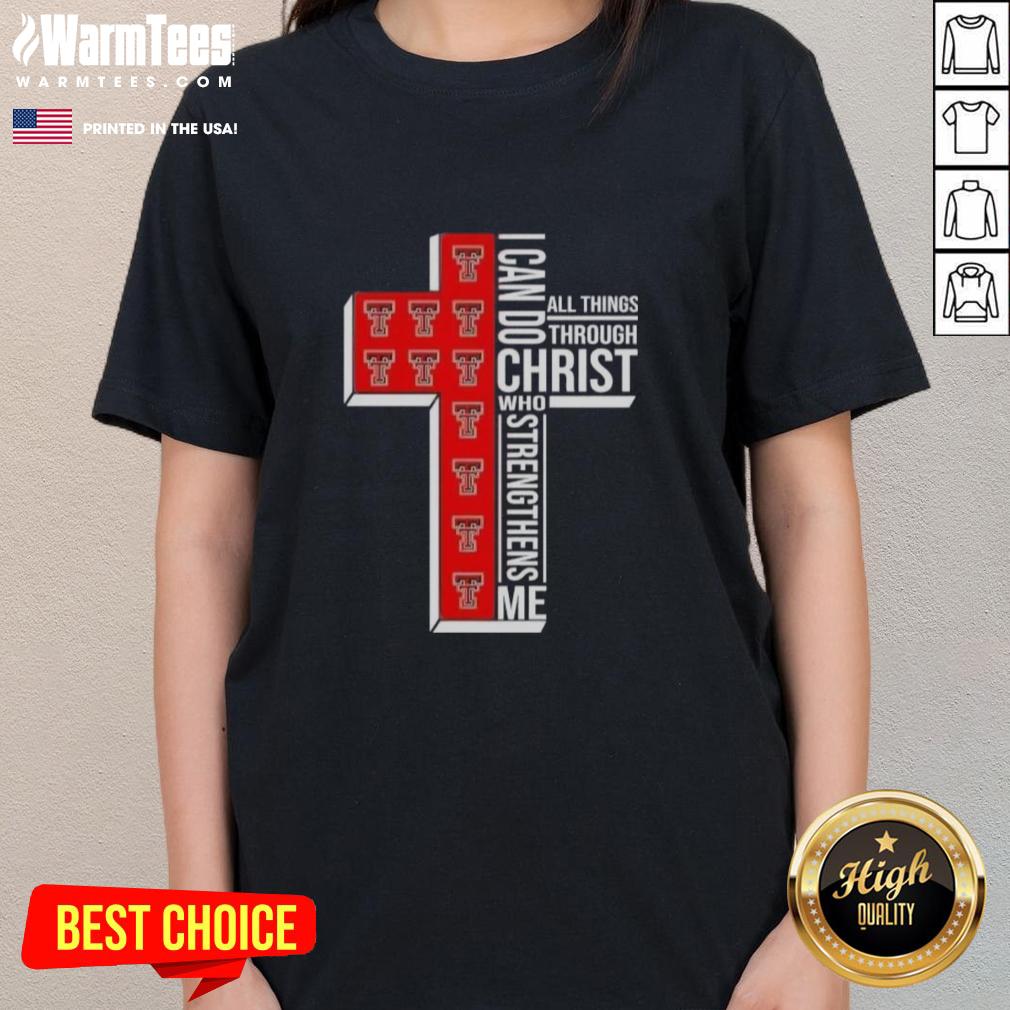 Awesome I Can Do All Things Through Christ Who Strengthens Me Texas Tech Red Raiders Football Cross T-Shirt