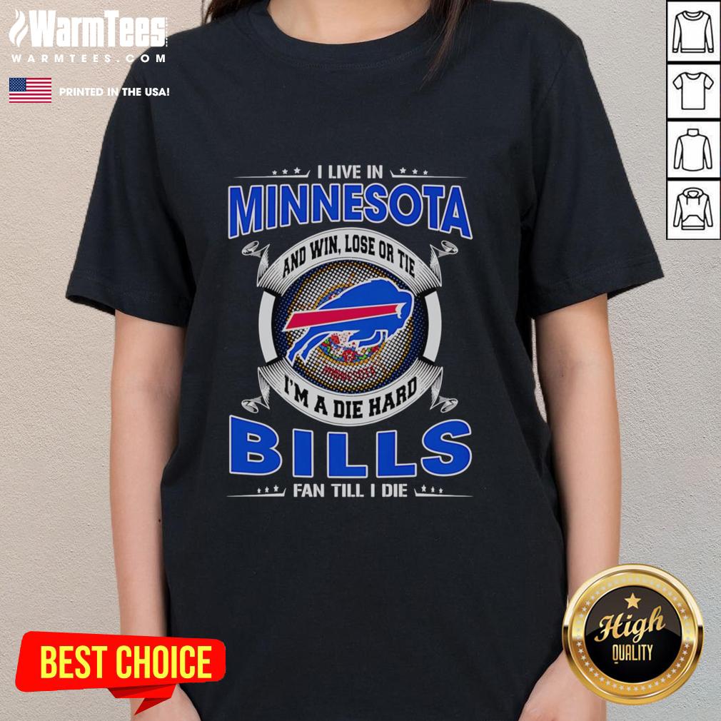 Awesome I Live In Minnesota And Win Lose Or Tie I’m A Dead Hard Buffalo Bills Fan Till I Die T-Shirt