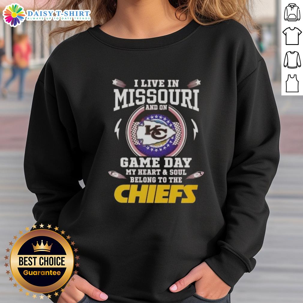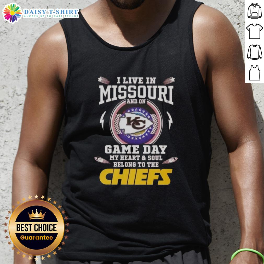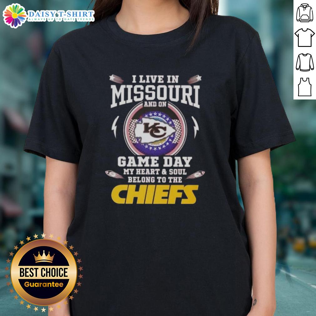 Awesome I Live In Missouri And On Game Day My Heart And Soul Belong To The Kansas City Chiefs T-Shirt