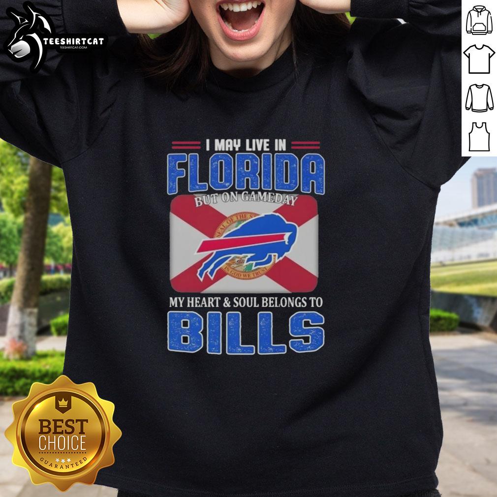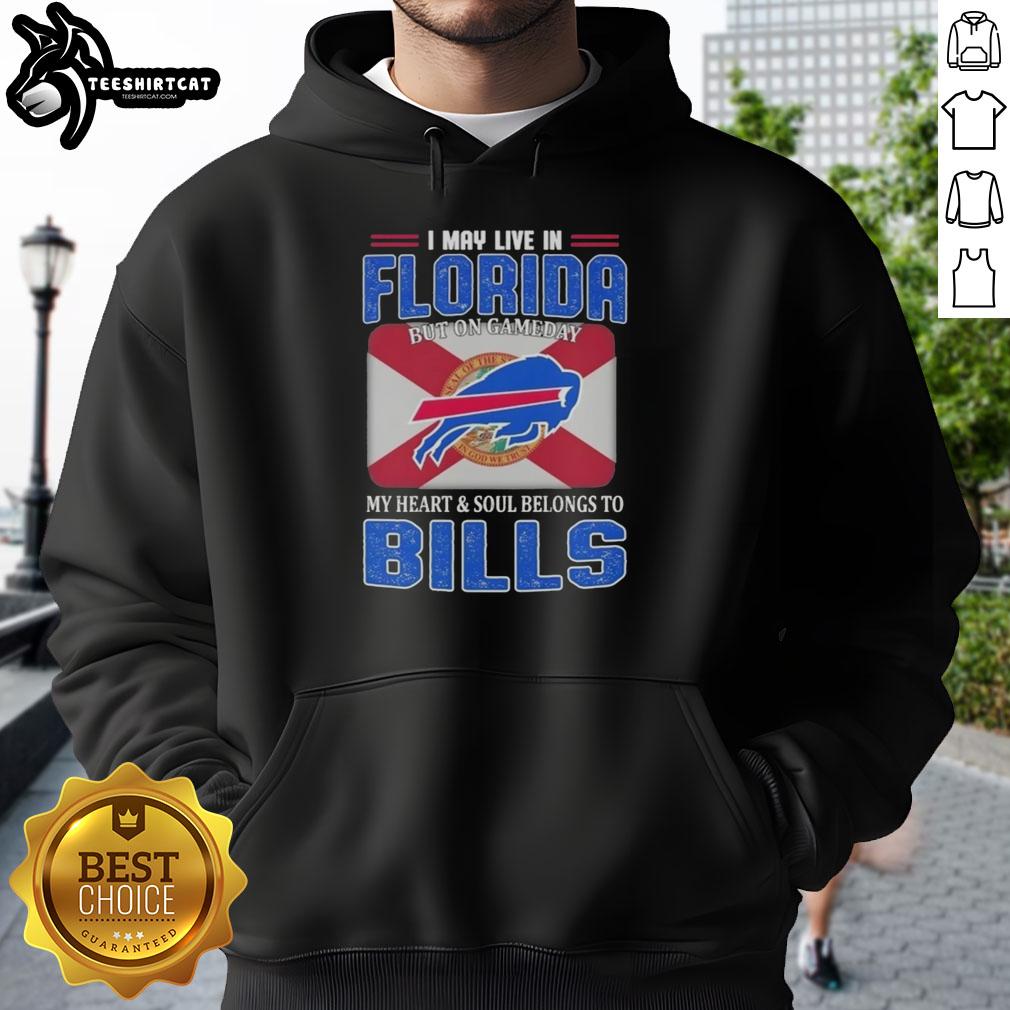 Awesome I May Live In Florida But On Gameday My Heart And Soul Belongs To Buffalo Bills Football Flag T-Shirt