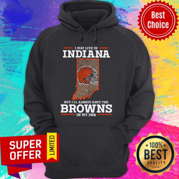 Awesome I May Live In Indiana But I’ll Always Have The Browns In My DNA Shirt