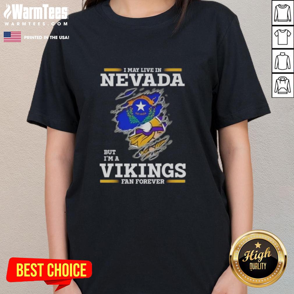 Awesome I May Live In Nevada But I’m A Minnesota Vikings Fan Forever T-Shirt
