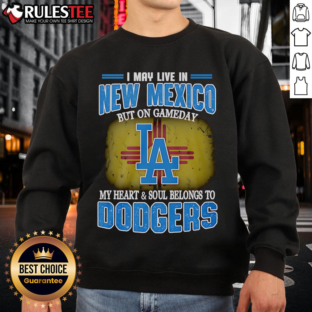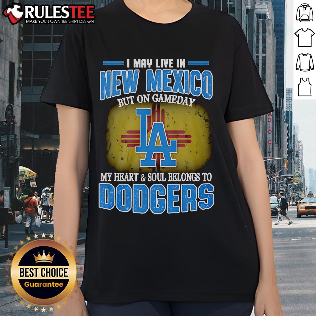Awesome I May Live In New Mexico But On Gameday My Heart And Soul Belongs To Dodgers T-Shirt