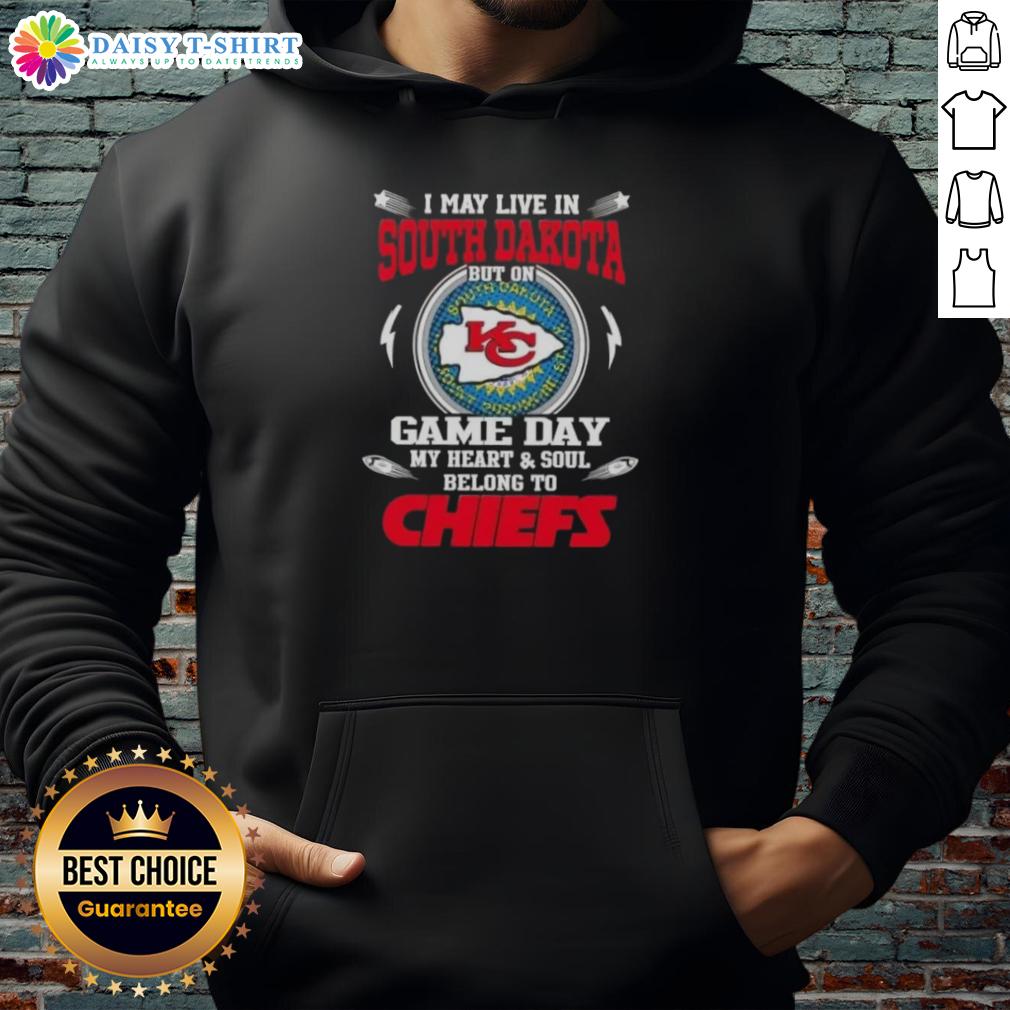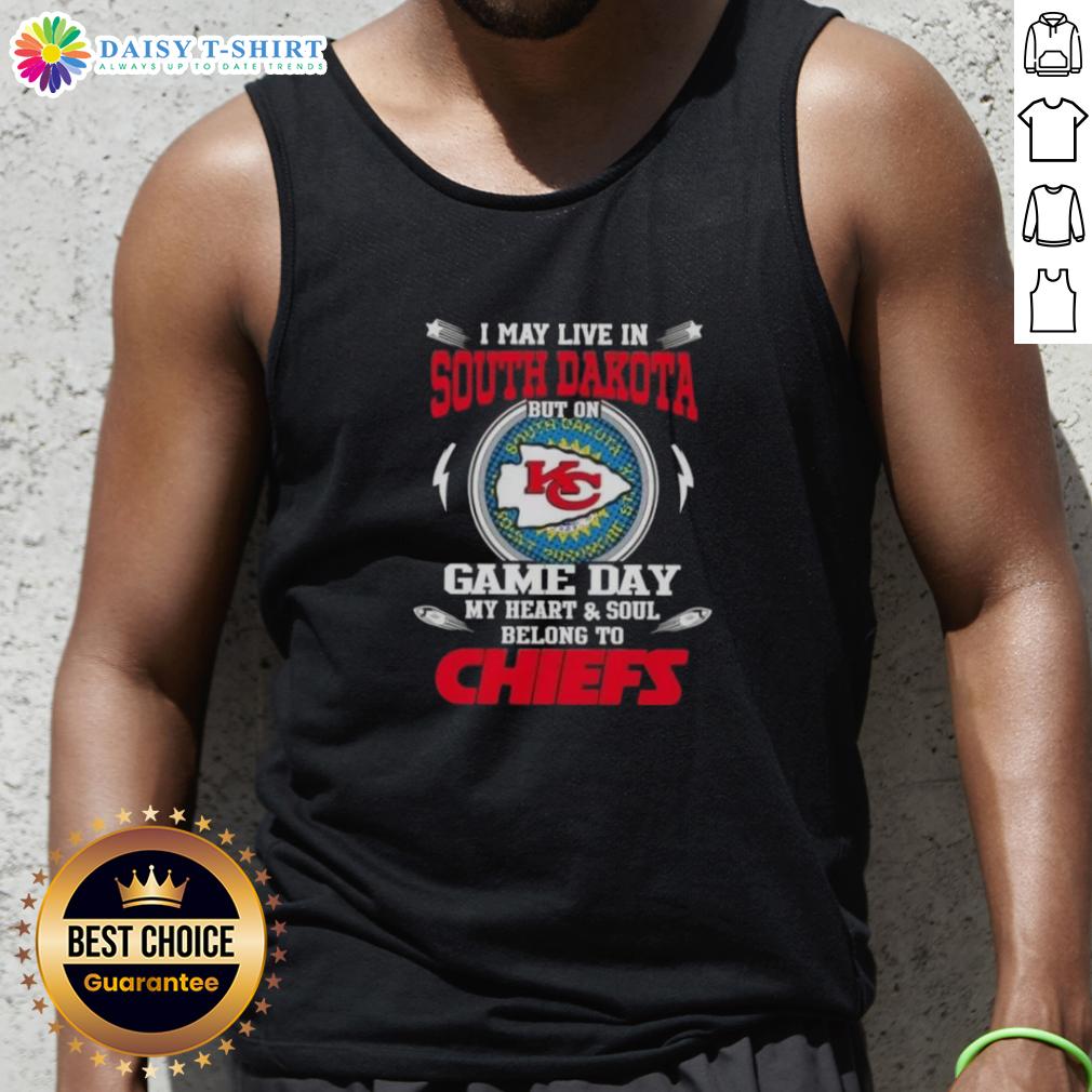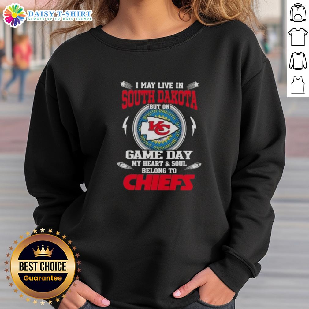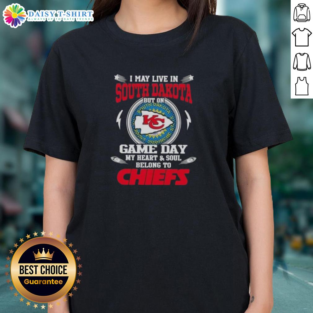 Awesome I May Live In South Dakota But On Game Day My Heart And Soul Belongs To Kansas City Chiefs T-Shirt