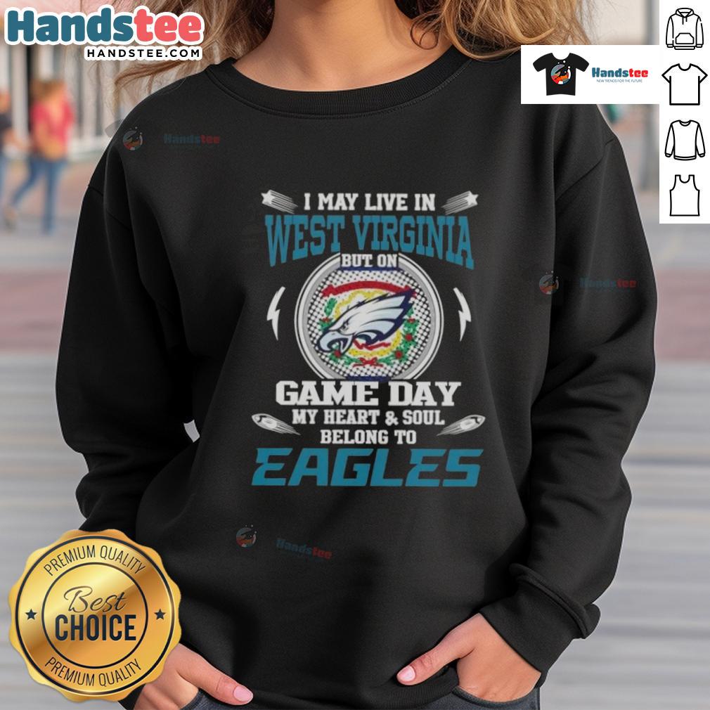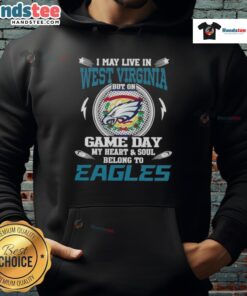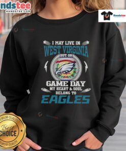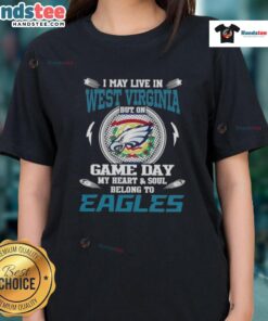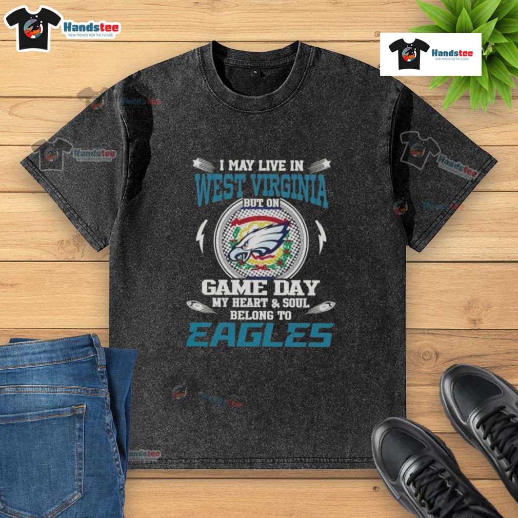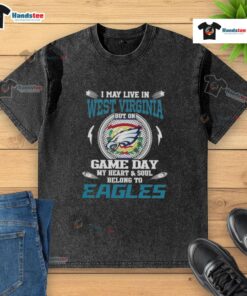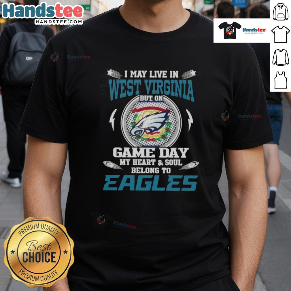 Awesome I May Live In West Virginia But On Game Day My Heart And Soul Belongs To Philadelphia Eagles T-Shirt