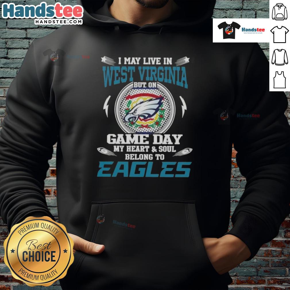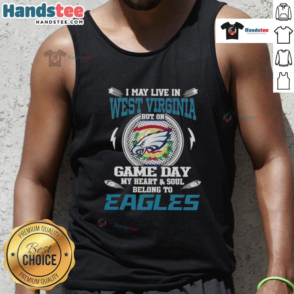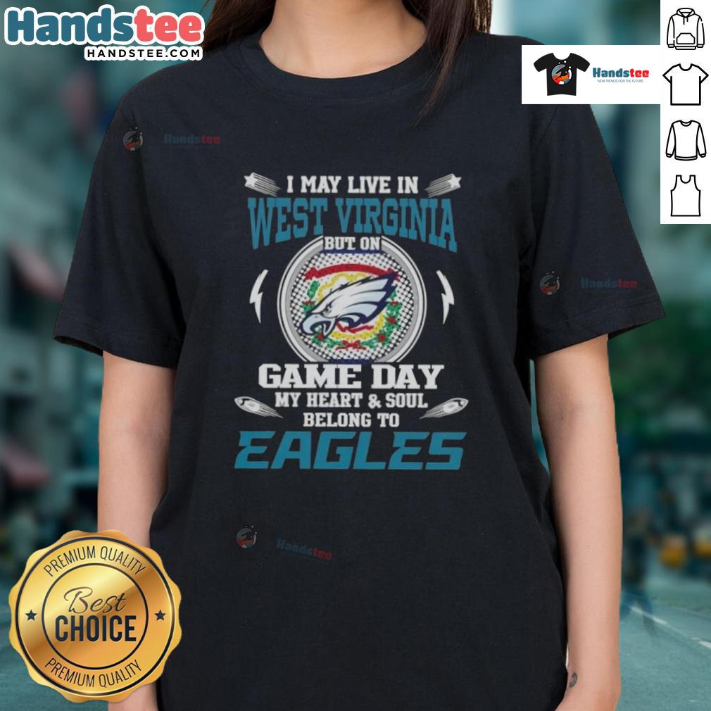 Awesome I May Live In West Virginia But On Game Day My Heart And Soul Belongs To Philadelphia Eagles T-Shirt