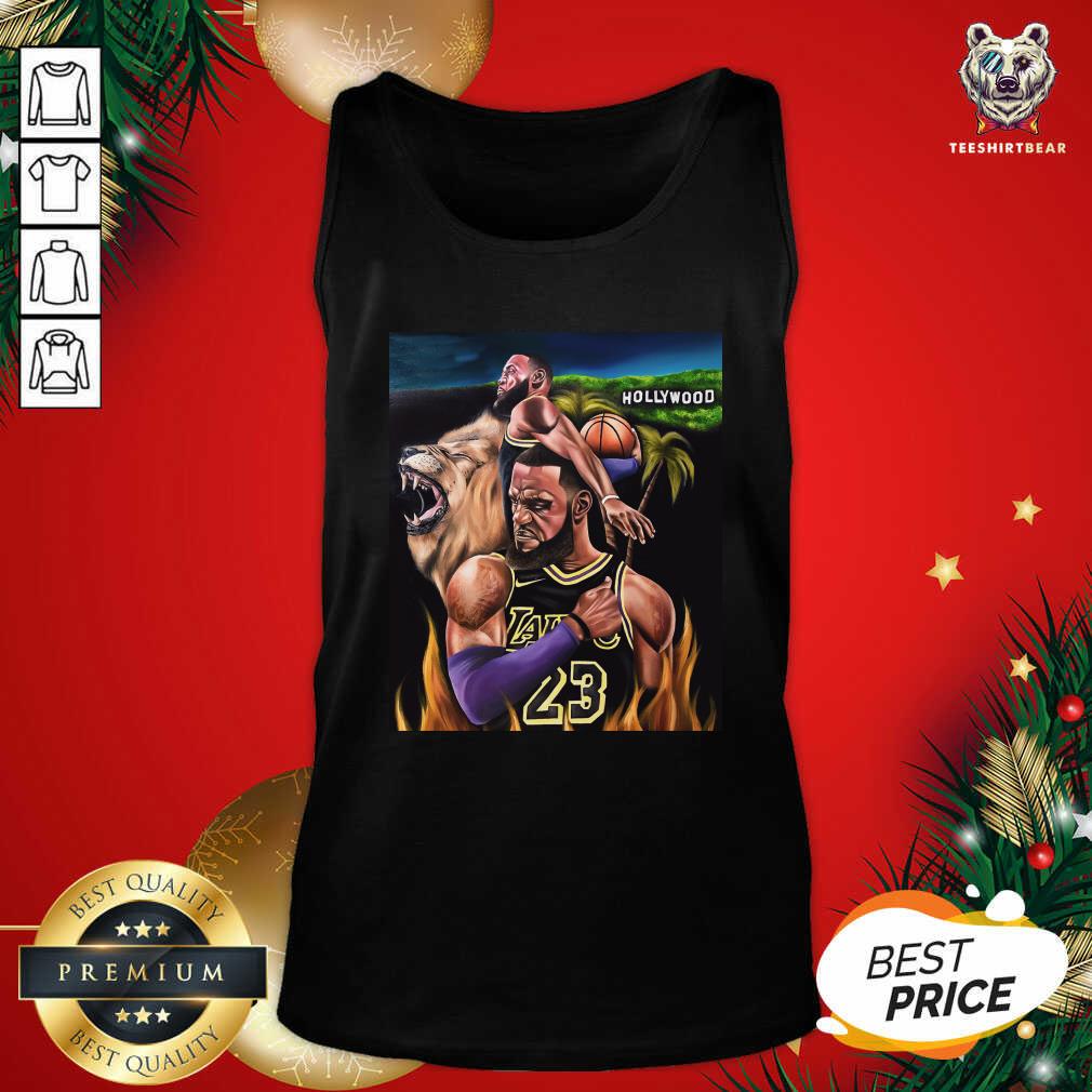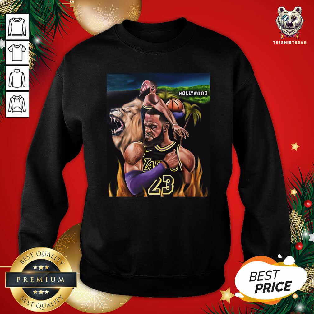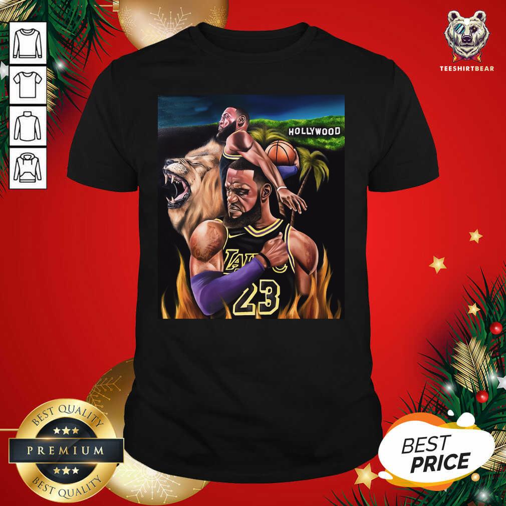 Awesome Lebron James 23 And Lion Hollywood Laker Shirt
