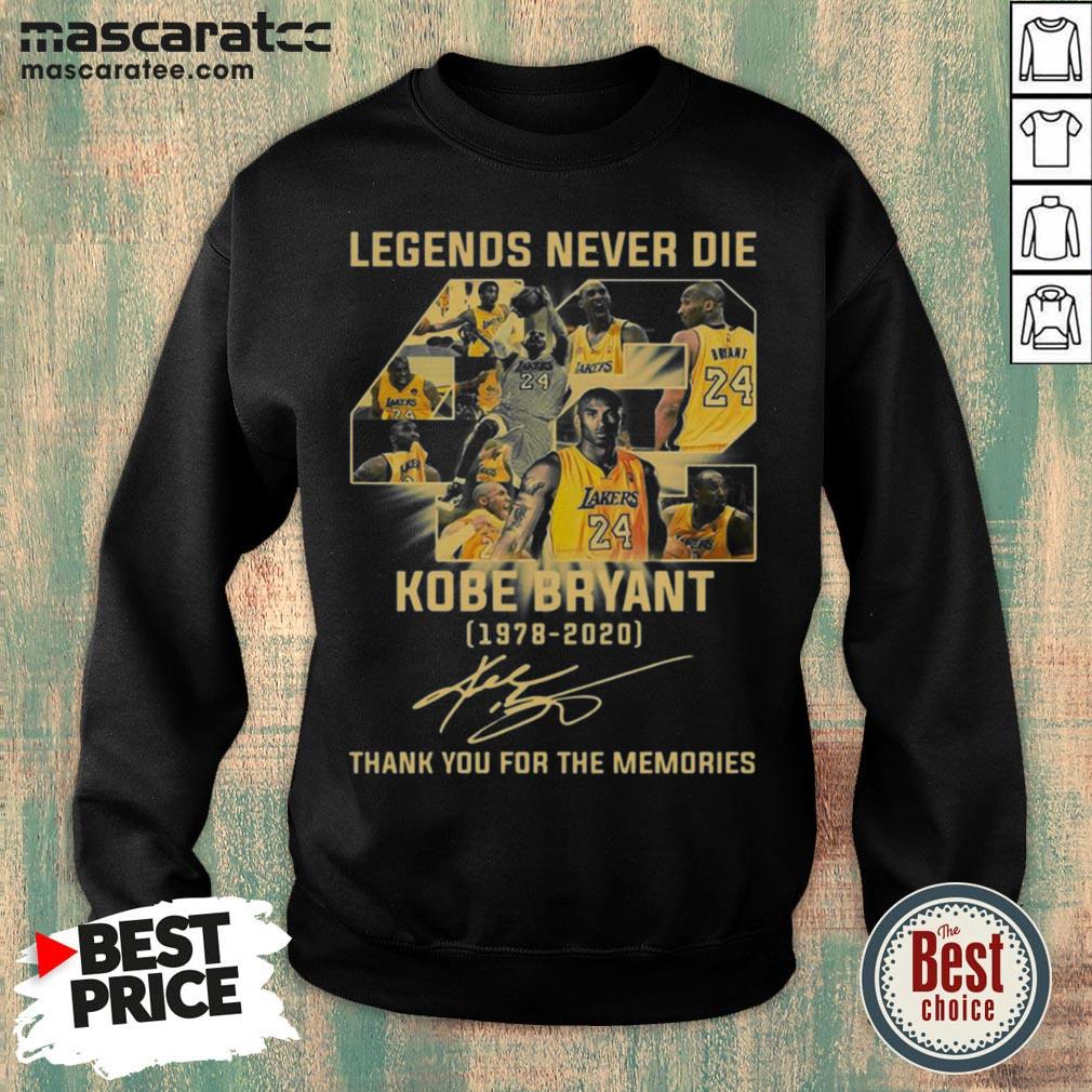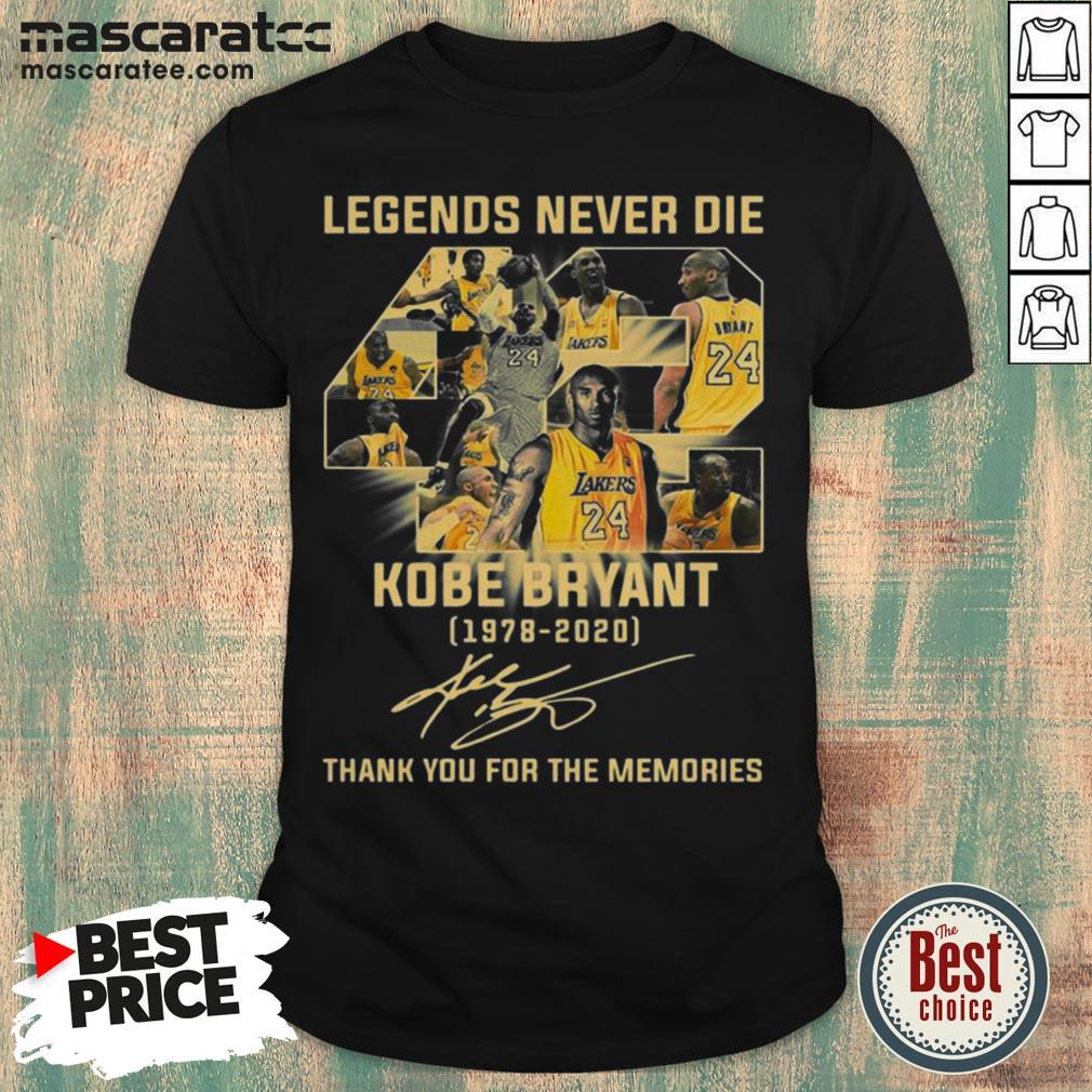Awesome Legends Never Die 42 Kobe Bryant 1978 2020 Thank You For The Memories Signature Shirt