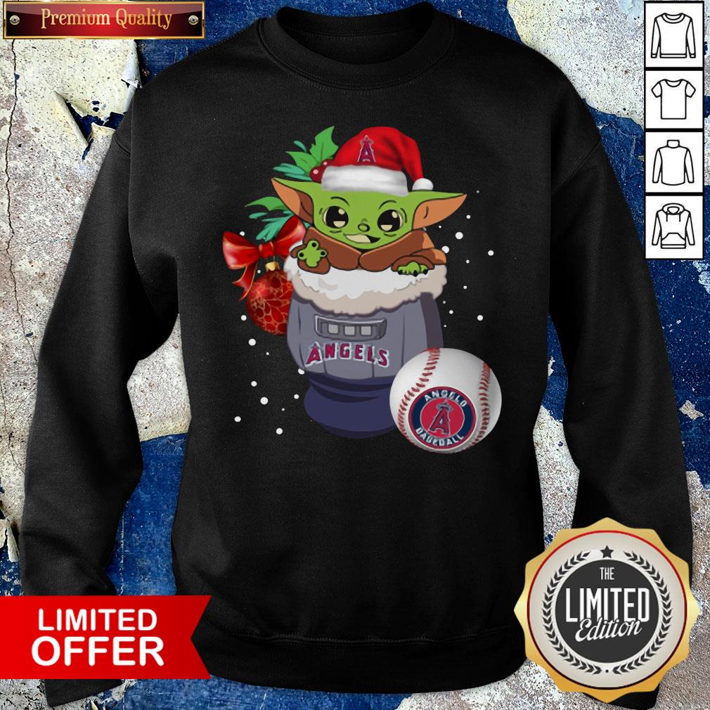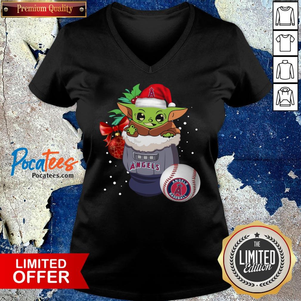 Awesome Los Angeles Angels Christmas Baby Yoda Star Wars Funny Happy MLB T-Shirt
