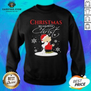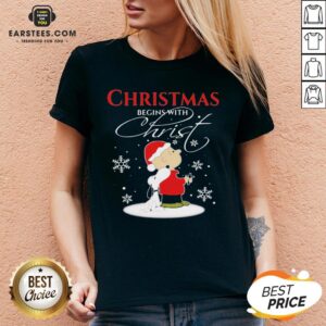 Awesome Merry Christmas Snoopy And Charlie Brown Begins With Christ Shirt
