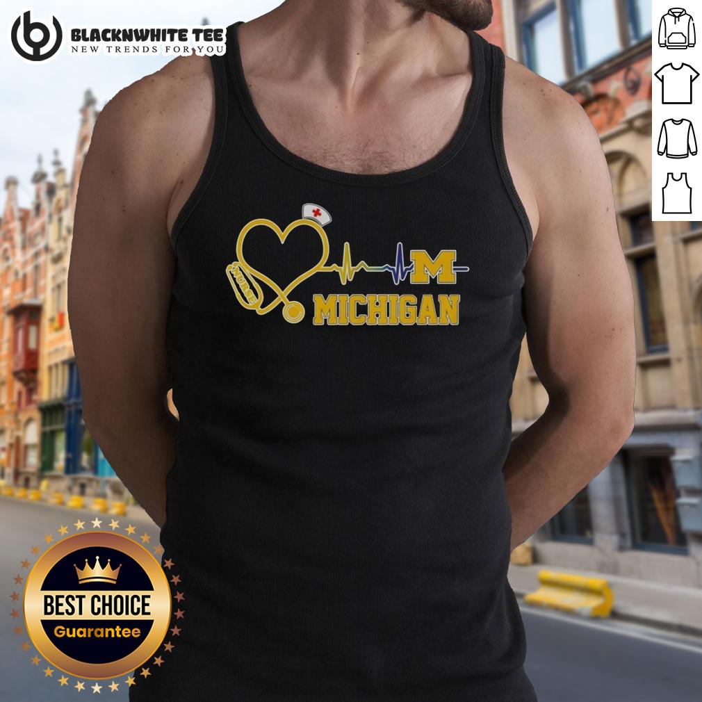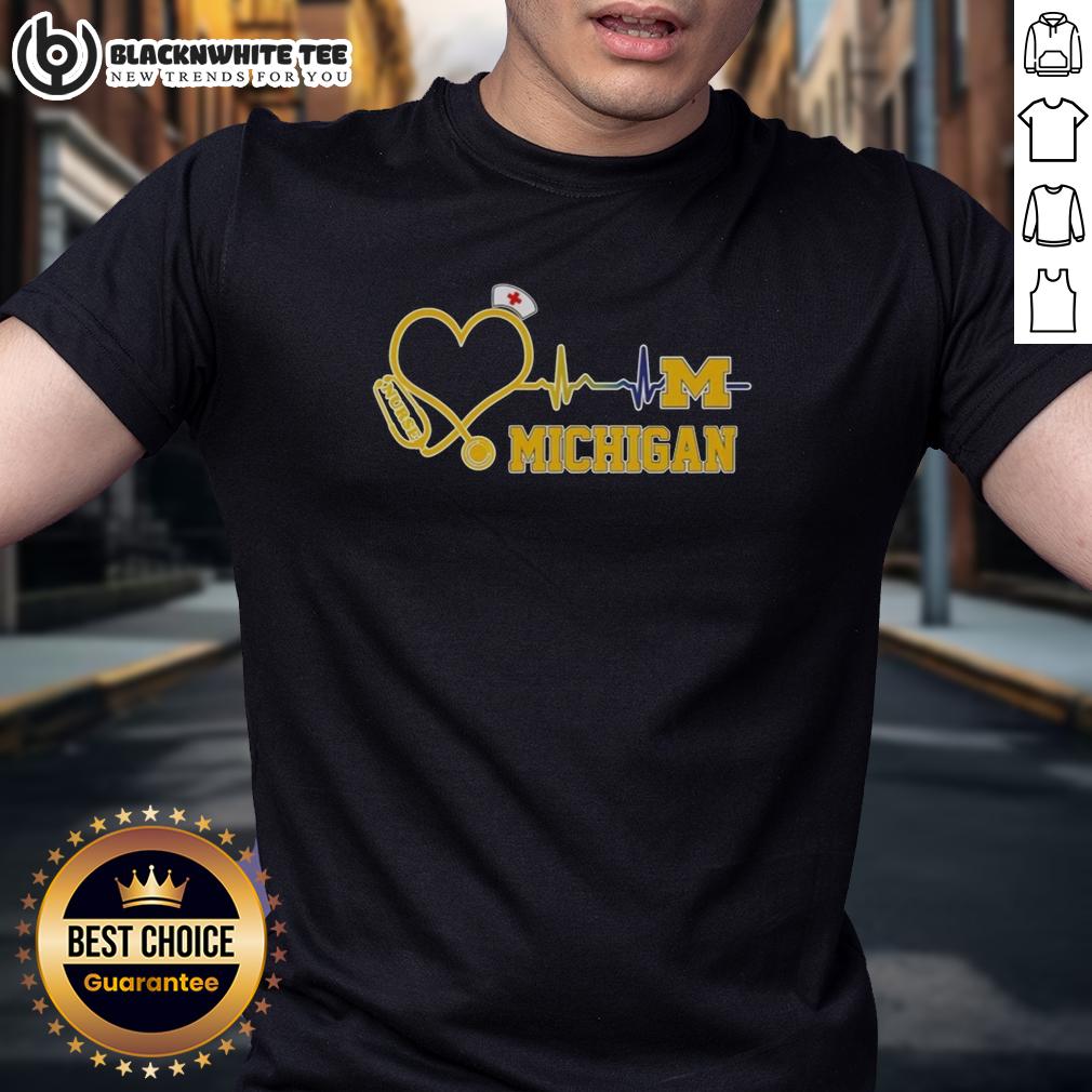 Awesome Michigan Wolverines Nurse Lover Heartbeat Baseball T-Shirt