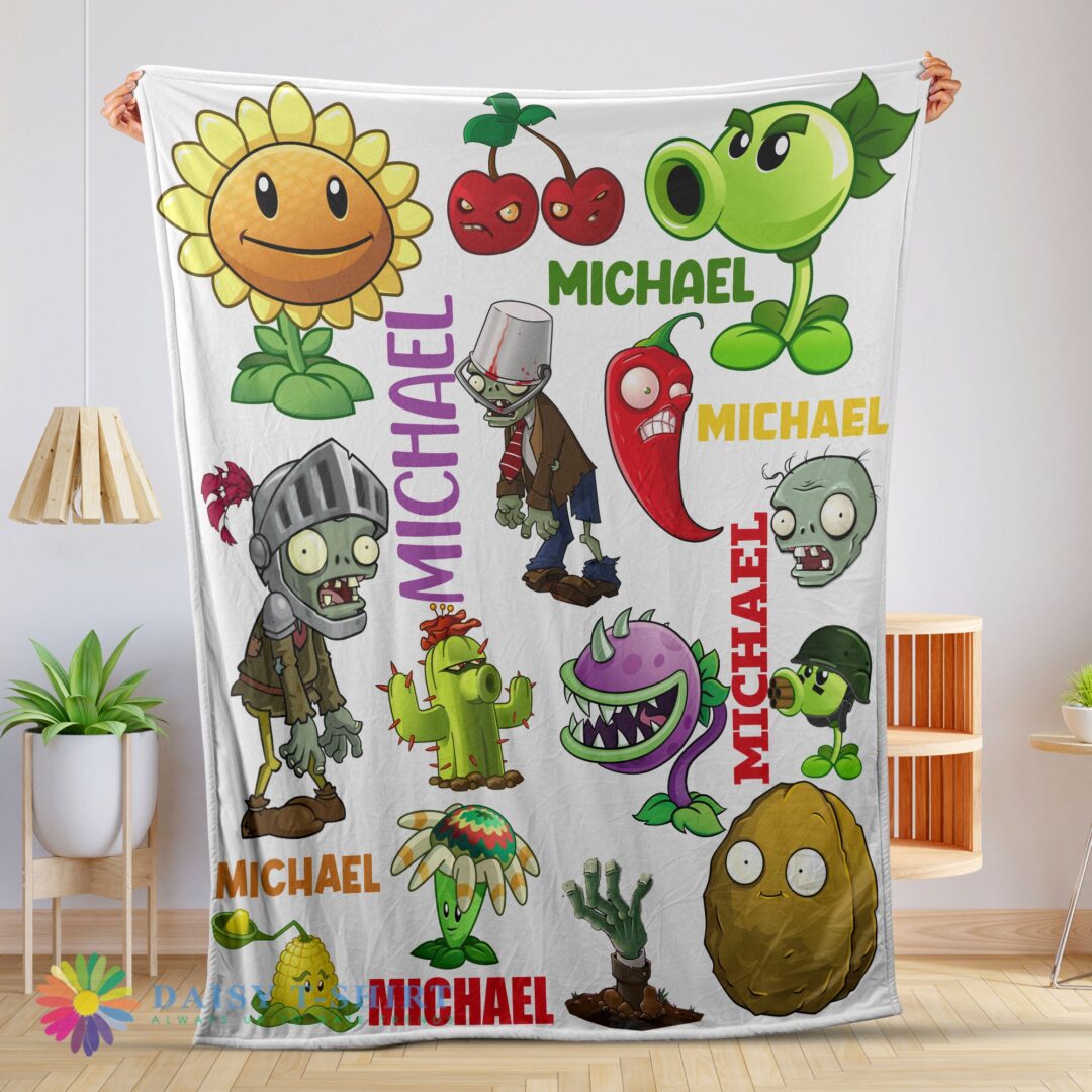 Awesome Official Pretty Plants Vs Zombies Characters Blanket Fleece Customized Blanket