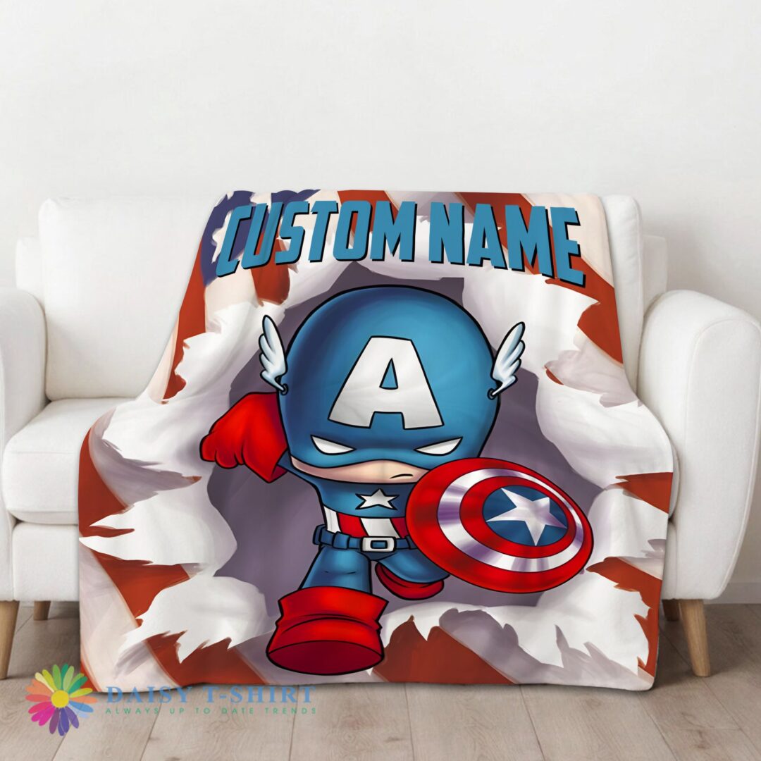 Awesome Official Superhero Marvel Avenger Chibi Captain America Blanket Fleece Customized Blanket