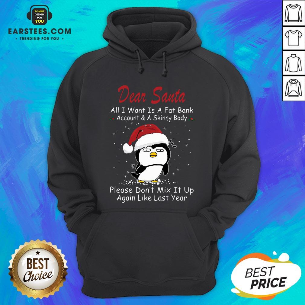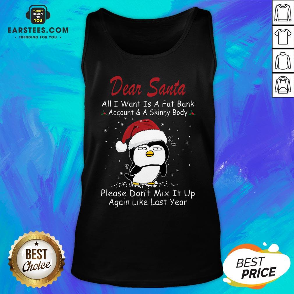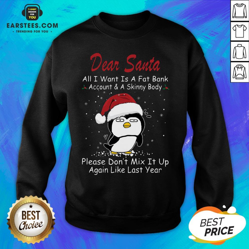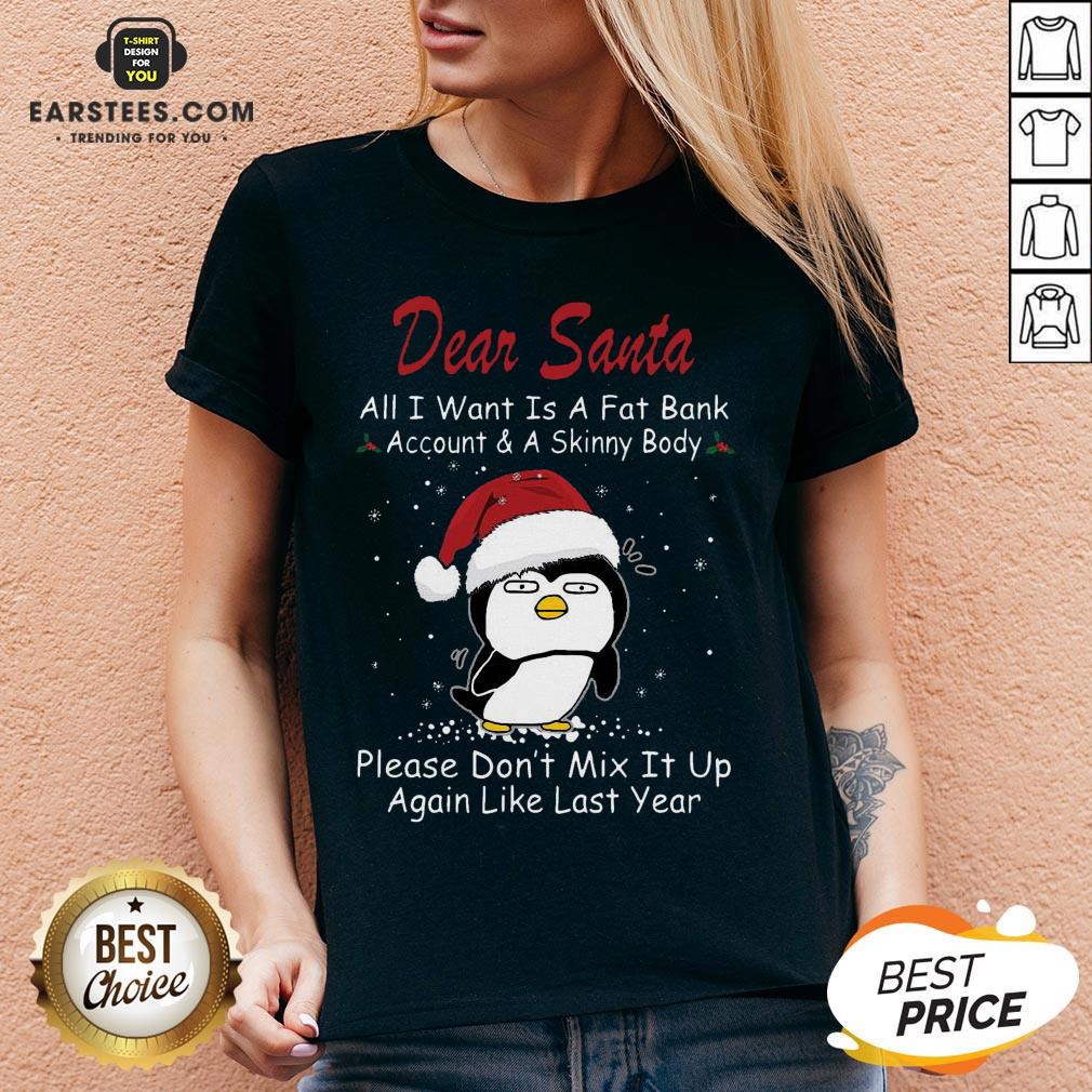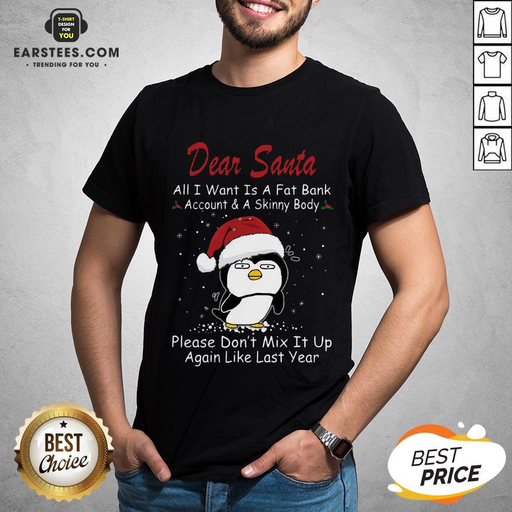 Awesome Penguin Dear Santa All I Want Is A Fat Bank Account And A Skinny Body Christmas Shirt