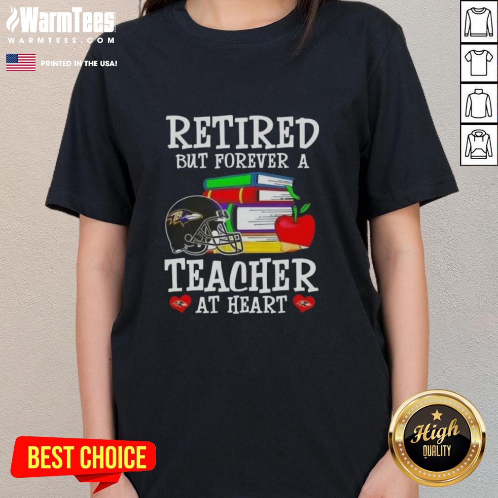 Awesome Retired But Forever A Teacher At Heart Baltimore Ravens Football T-Shirt